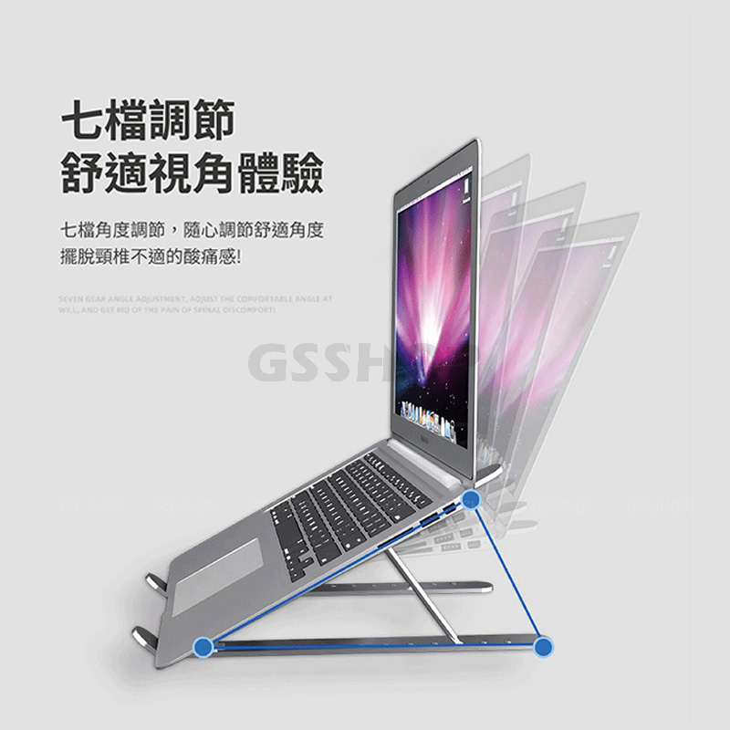 筆電散熱支架 Macbook ASUS ACER鋁合金支架 筆記型電腦 平板電腦 桌面支架 可折疊 多角度 散熱架 穩固銀色|黑色|寬度可調整款-黑|寬度可調整款-銀Laptop Stands & Foldable Laptop DesksGS 3C 手機平板配件選品店