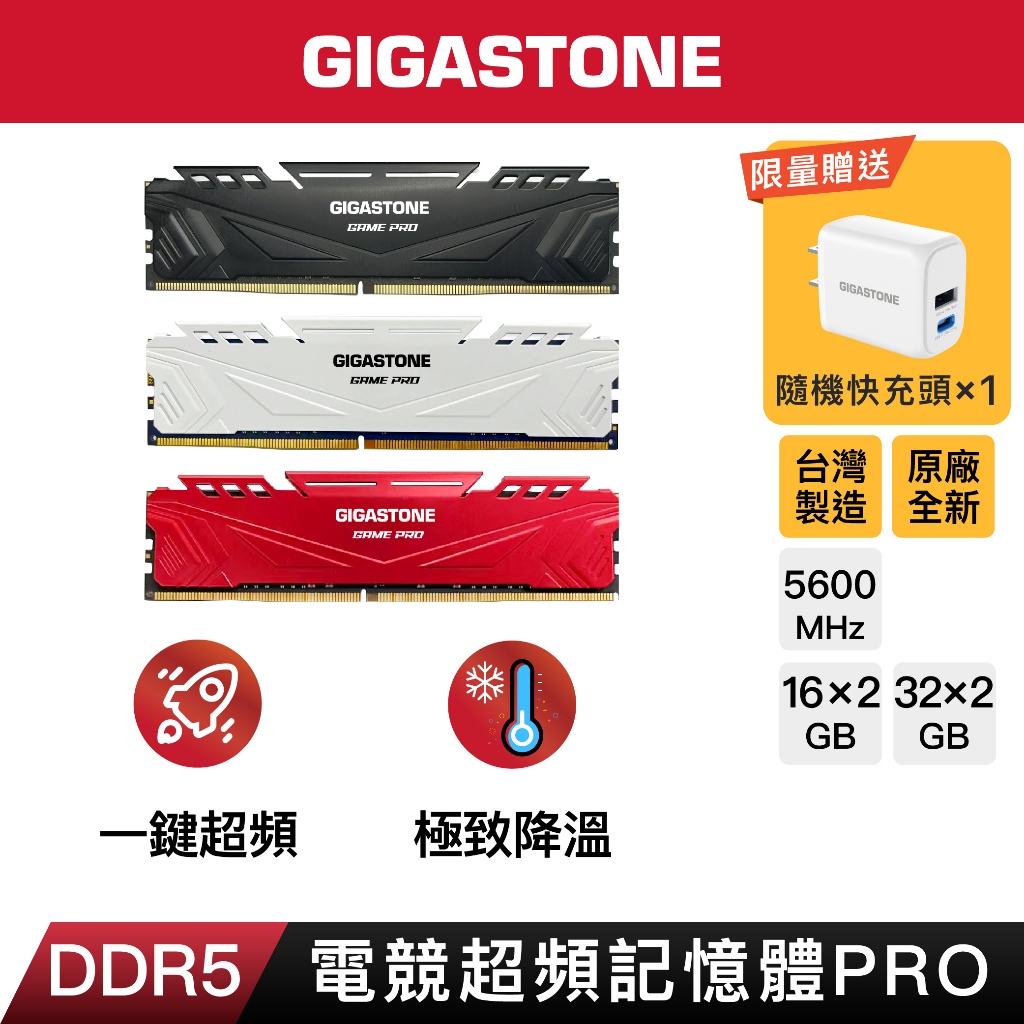 【GIGASTONE】電競超頻記憶體DDR5 XMP 32G/16G|台灣製造RAM/5600Mhz/16GB/32GBPRO 太空黑,DDR5-5600 16GBx2【熱銷】|PRO 太空黑,DDR5-5600 32GBx2|PRO 珍珠白,DDR5-5600 16GBx2【熱銷】|PRO 珍珠白,DDR5-5600 32GBx2|PRO 鋼鐵紅,DDR5-5600 16GBx2【熱銷】|PRO 鋼鐵紅,DDR5-5600 32GBx2RAMGIGASTONE 立達國際官方旗艦店