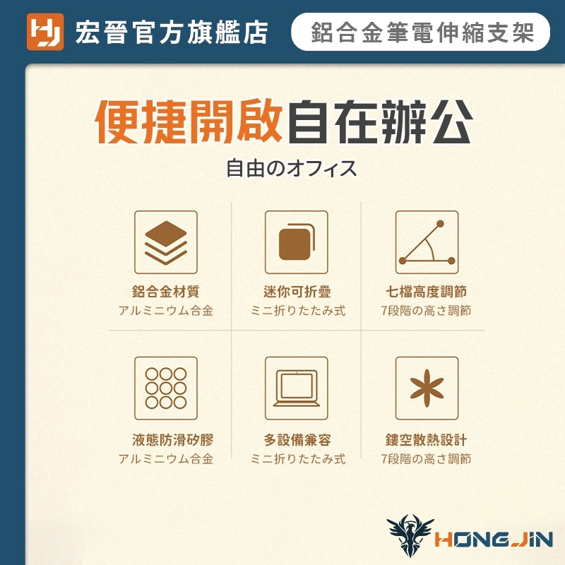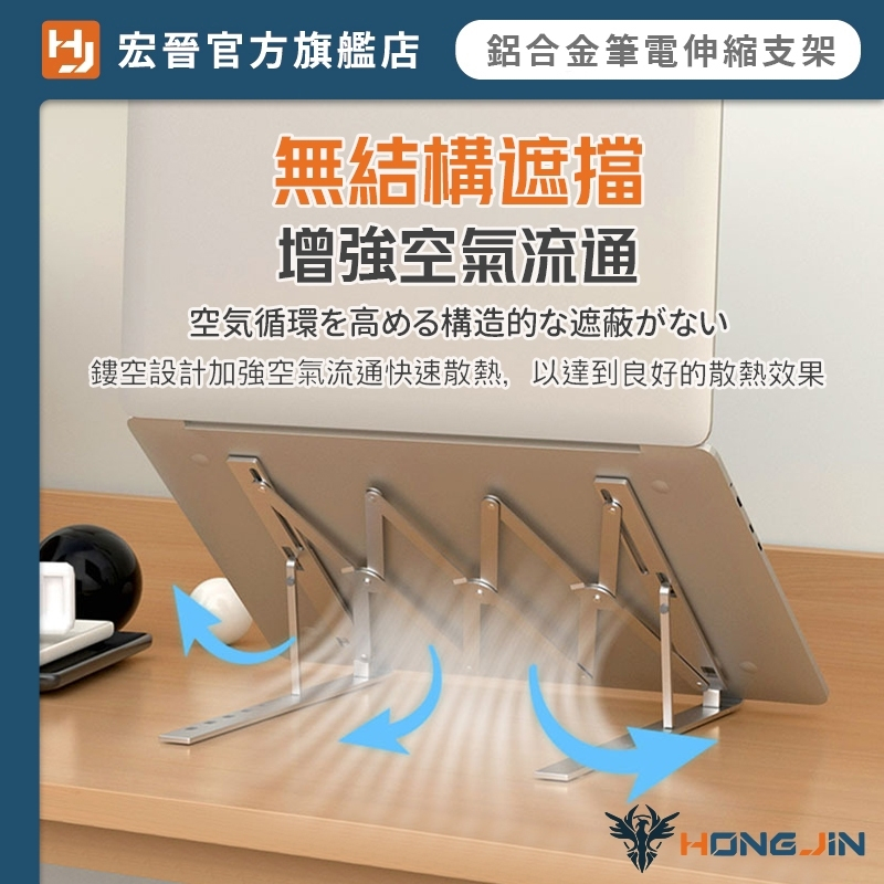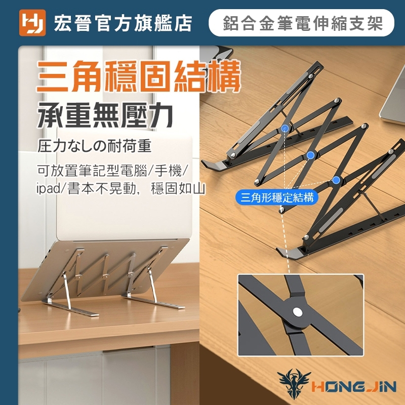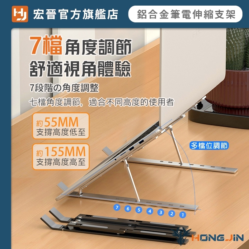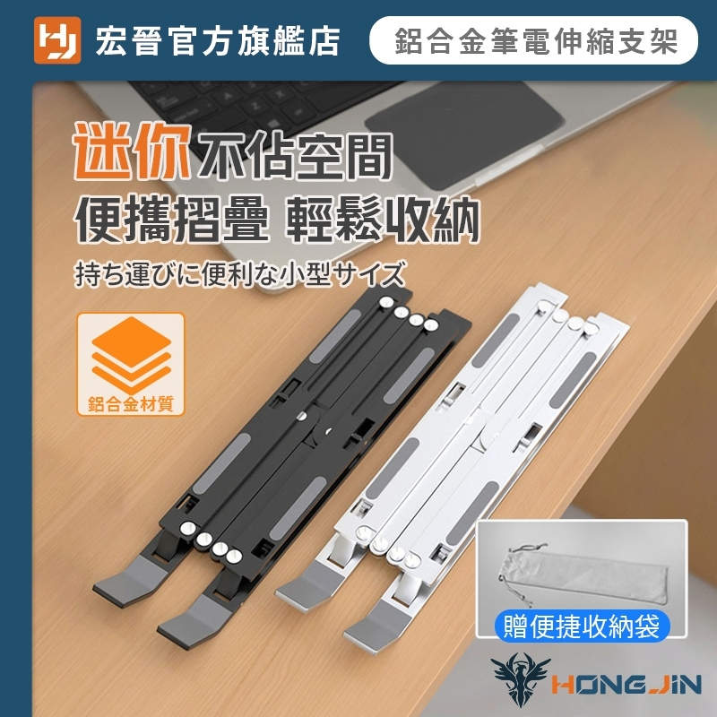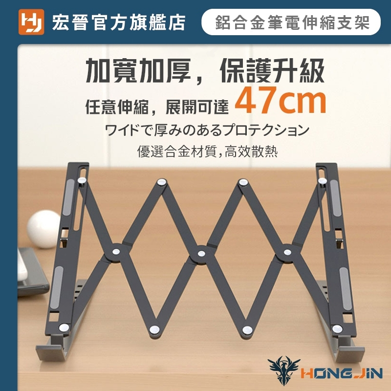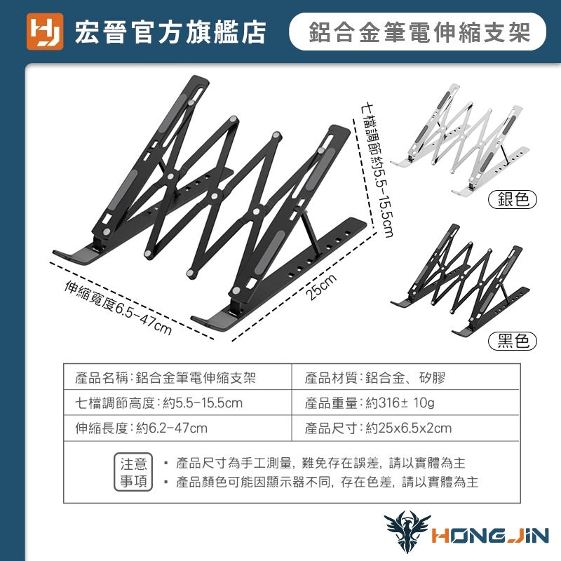 鋁合金筆電伸縮支架 寬度伸縮鋁合金調節支架 鋁合金 桌面型 平板 手機 筆電 支架 7檔調節 自由調整 可折疊收納黑|銀Laptop Stands & Foldable Laptop DesksHONG JIN 宏晉 |3C資訊廣場