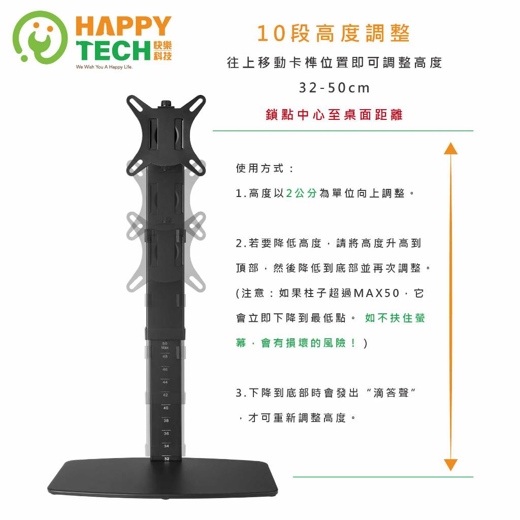 【HappyTech】D06-10高度調整 桌上型 螢幕支架 電腦螢幕架 置桌型 17~32白色(超商取貨限一組)|黑色(超商取貨限一組)OthersHappy Tech 品牌旗艦館