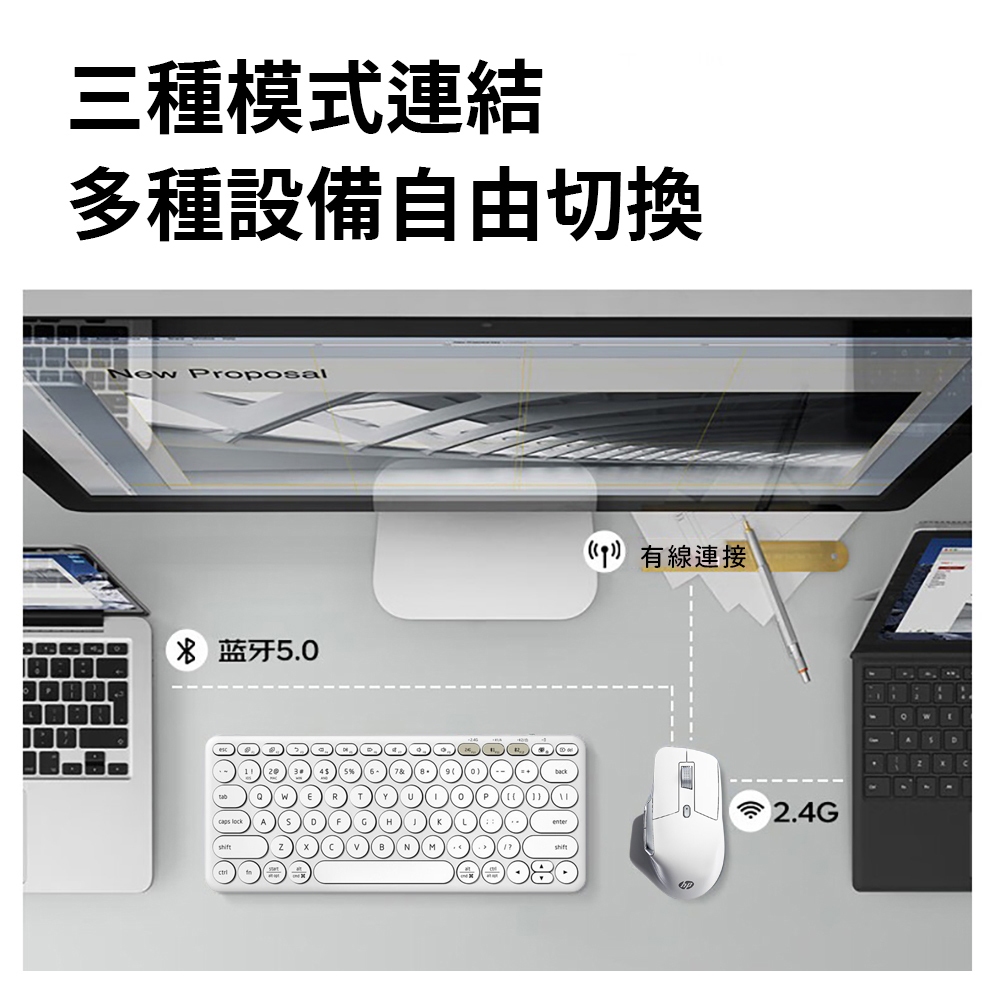 HP 惠普 Professor 1 無線/藍牙/有線 三模充電式滑鼠 白/黑 【HP原廠購物網】 正品保證白色|黑色MiceHP 惠普台灣原廠購物網