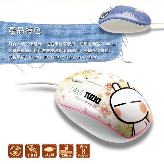 【i2】兔斯基有線滑鼠 (兔子滑鼠、BSMI安規認證) 線長100cm努力向上|愛戀花漾|單寧兔(功能完整,只有印刷表面有裂)|愛戀花漾(功能完整,只有印刷表面有裂)Micei2store官方生活旗艦店