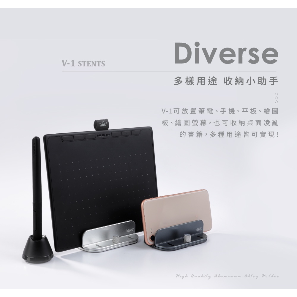 【idart 台灣品牌】V-1 鋁合金 / 筆電 / 平板 直立式收納支架極光銀|鐵灰黑Laptop Stands & Foldable Laptop DesksHUION繪王台灣總代理 | 意念數位直營店