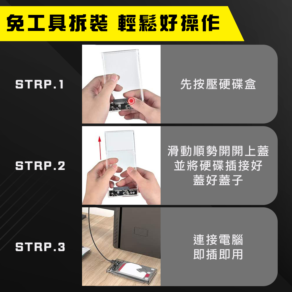 2.5吋 USB 5G速度 SATA 硬碟 外接 盒 透明 硬碟盒 SSD 獨本體x1_TypeC接口|本體x1_micro10P接口Hard Disk Casings & Dockingsi-gota官方旗艦館|昶興電子