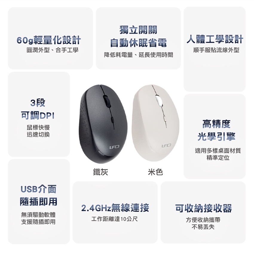 【Intopic】MSW-772 2.4GHz 自動省電技術 飛碟 無線滑鼠鐵灰色|米色MiceIntopic廣鼎國際 | 官方3C旗艦館