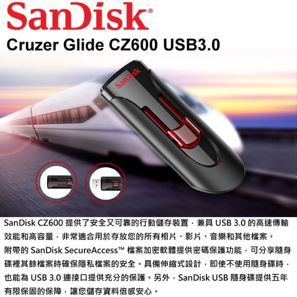 【SANDISK】Cruzer Glide USB 隨身碟 CZ600 USB3.0 隨身碟32G|64G|128GFlash Drives & OTGiPanic 品牌專賣