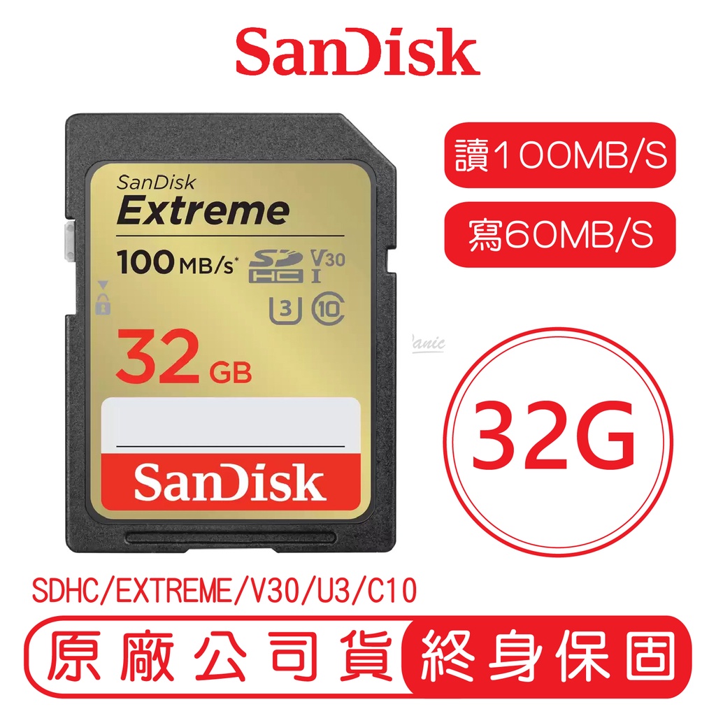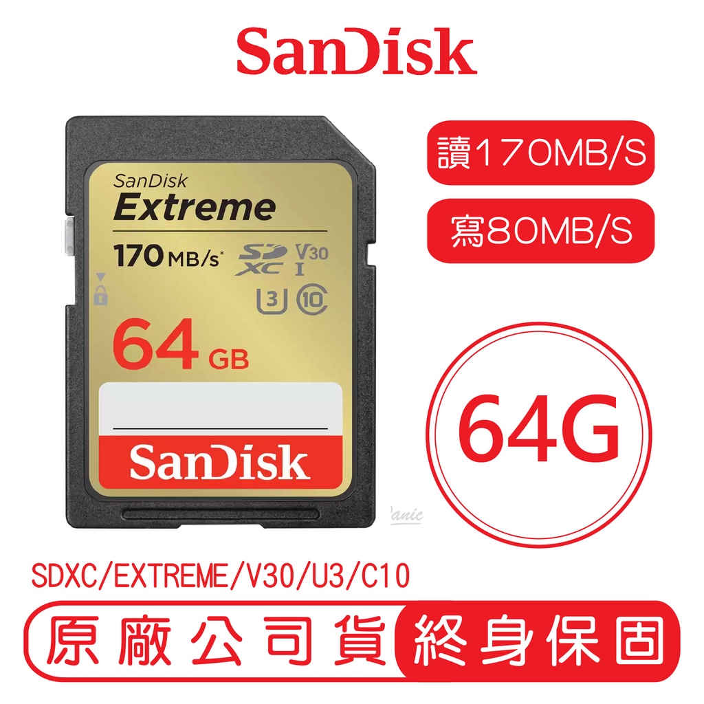 SanDisk 64G 32G EXTREME SD C10 U3 V30 記憶卡 讀100MB 寫60MB64G(R170W80)|32G(R100W60)OthersiPanic 品牌專賣