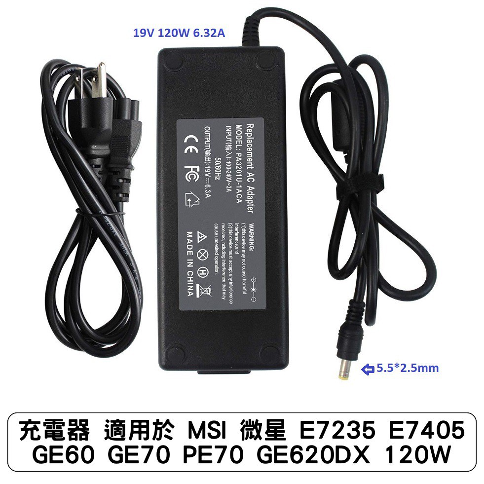 充電器 適用於 MSI 微星 E7235 E7405 GE60 GE70 PE70 GE620DX 120W充電器 適用於 MSI 微星 E7235 E7405 GE60 GE70 PE70 GE620DX 120WLaptop Chargers & AdaptorsLala 3C配件專賣店