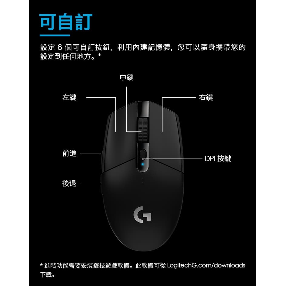 Logitech 羅技 G304 LIGHTSPEED 無線電競滑鼠(5色選)【現貨】【GAME休閒館】神秘黑|極光白|藍色|紫色|綠色MiceGAME休閒館