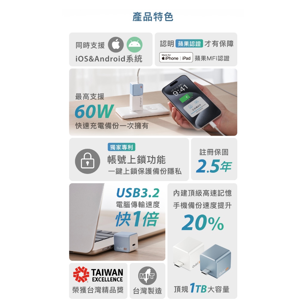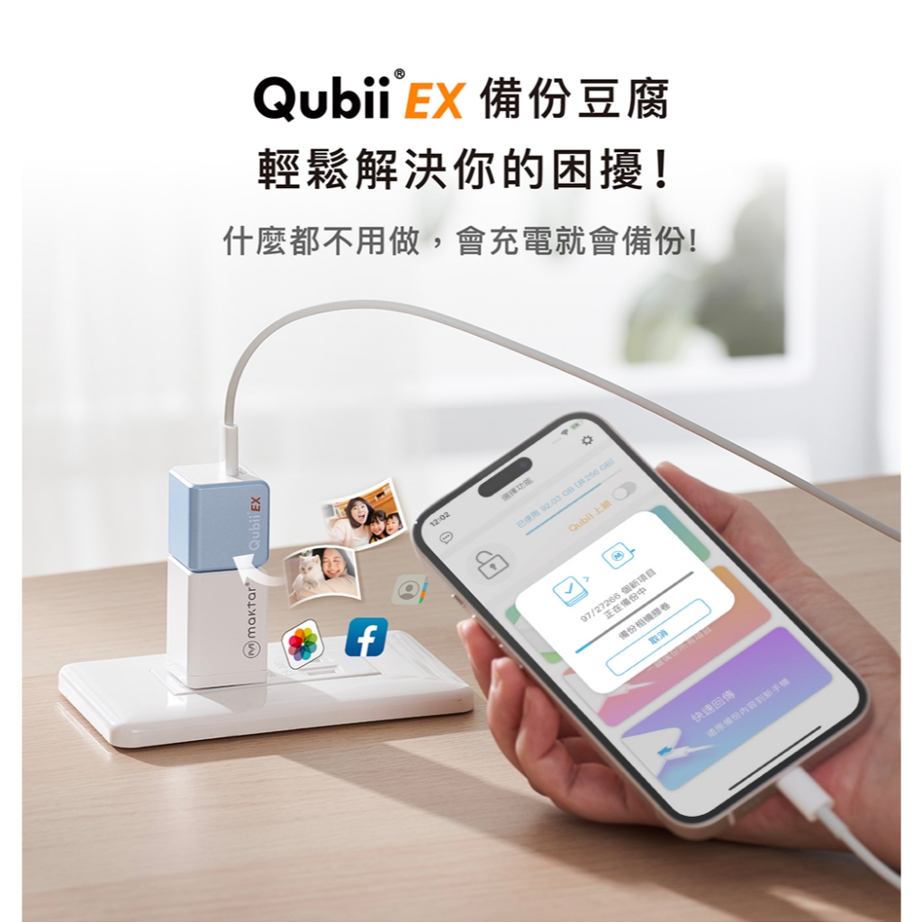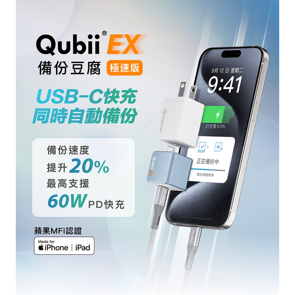 Maktar Qubii EX USB-C 極速版〔 內含256G容量 〕備份豆腐 自動備份 手機備份 蘋果MFi認證