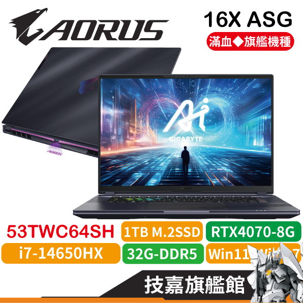 技嘉 AORUS 16X ASG-53TWC64SH 16吋 i7 32G 1TB RTX4070 星夜灰 電競筆電原廠標配32G/1TB|標配 1TB【客製化升級1TB+1TB】|標配 1TB【客製化升級1TB+2TB】|客製化【32G+32G/1TB+2TB】|客製化升級記憶體64G【32G+32G】GIGABYTE 技嘉旗艦館