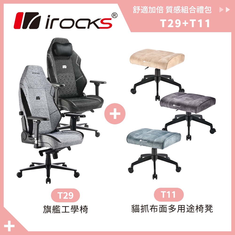 優惠組合|irocks T11 椅凳 + T29 旗艦工學椅 組合黑色,黑色|黑色,米色|黑色,孔雀綠|灰色,黑色|灰色,米色|灰色,孔雀綠Othersirocks 艾芮克官方授權網路旗艦店