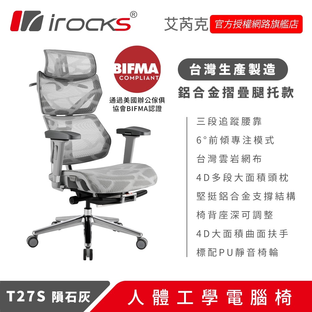 irocks T27S 雲岩網 附腳托 人體工學椅 電腦椅 灰白色本島|澎湖|金門Othersirocks 艾芮克官方授權網路旗艦店