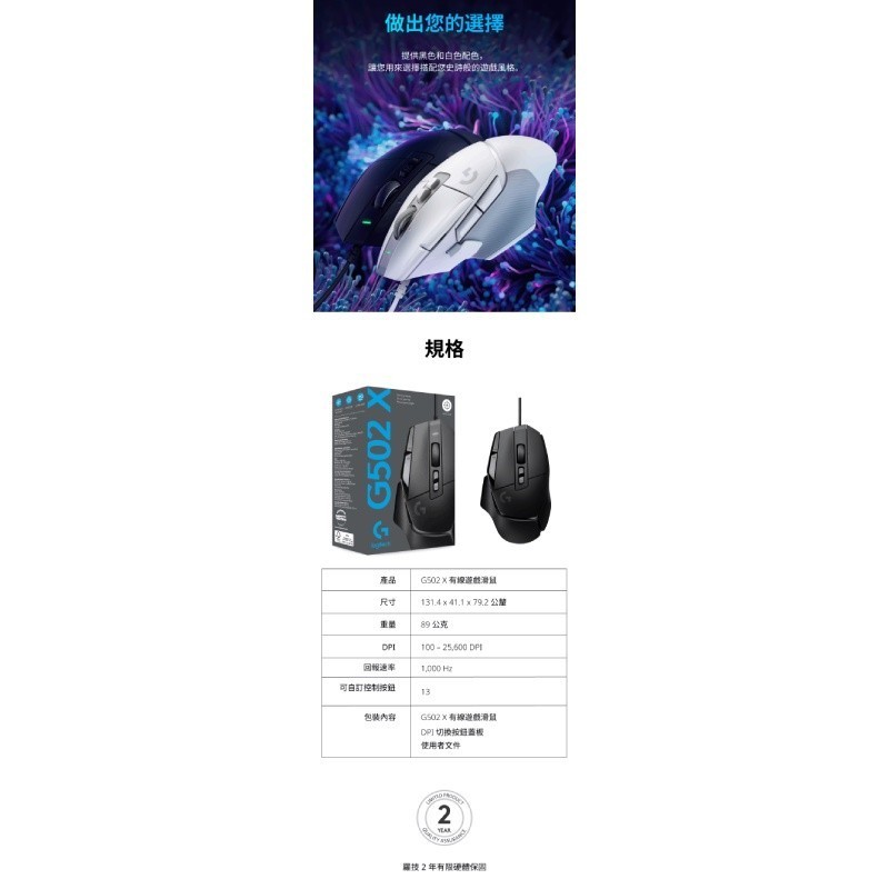 Logitech G 羅技 G502 X 高效能有線電競滑鼠岩石黑|皓月白MiceLogitech羅技官方旗艦館