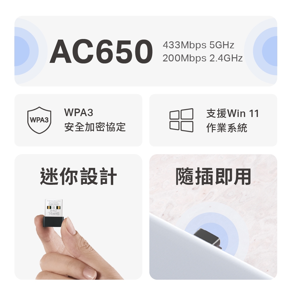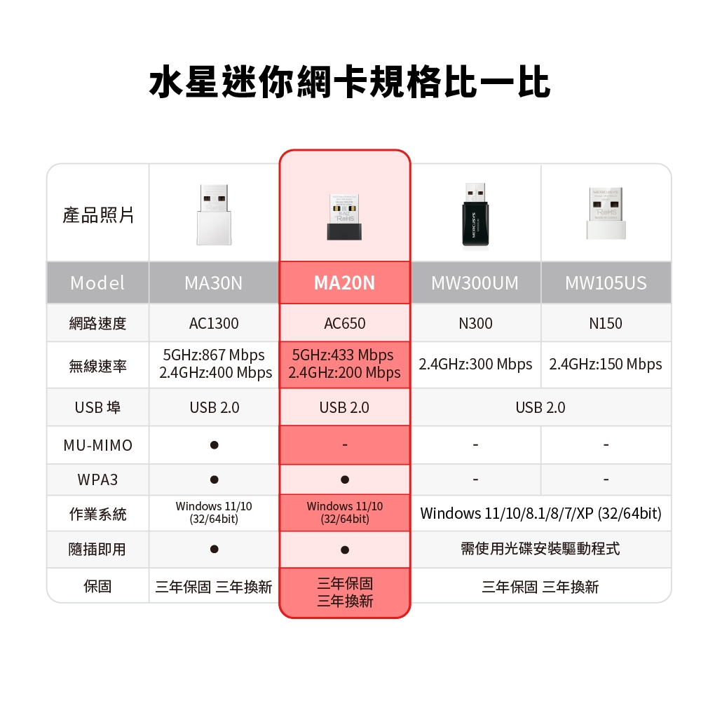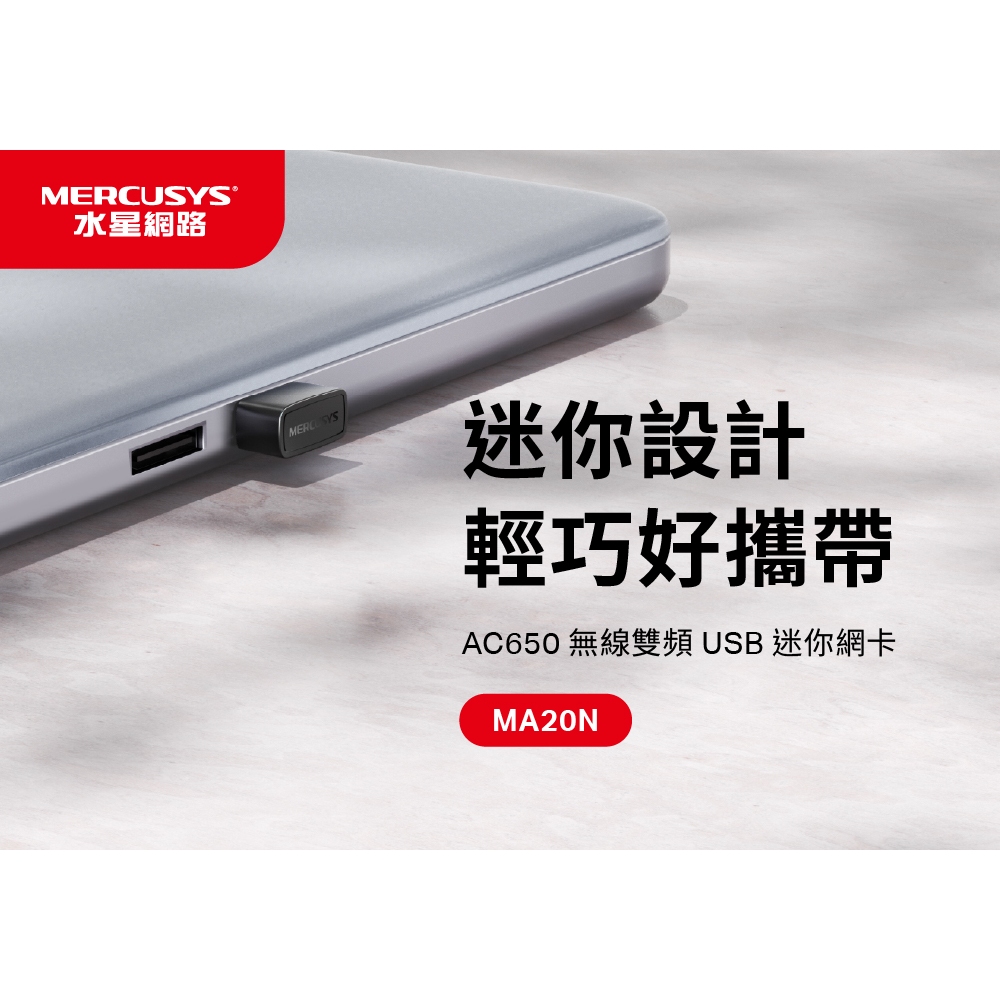 Mercusys水星網路 MA20N AC650 無線網卡 無線微型雙頻USB網卡 WPA3MA20N|【福利品】MA20NWireless Adapters & Network CardsMercusys水星 官方旗艦店