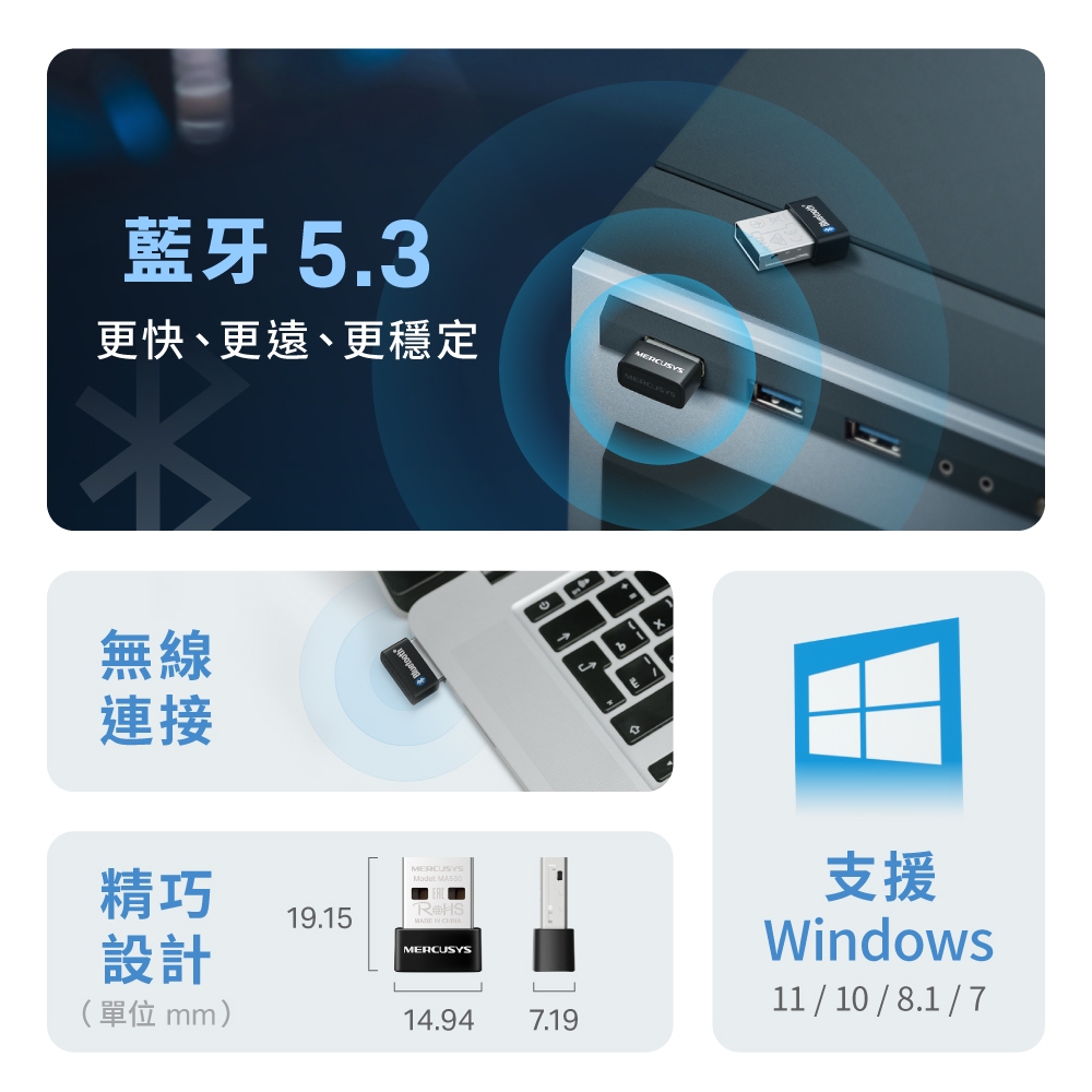 Mercusys水星網路 MA530 藍牙接收器 藍芽5.3 微型 USB 接收器 迷你尺寸 無線連接(傳輸器、適配器)MA530|【福利品】MA530OthersMercusys水星 官方旗艦店