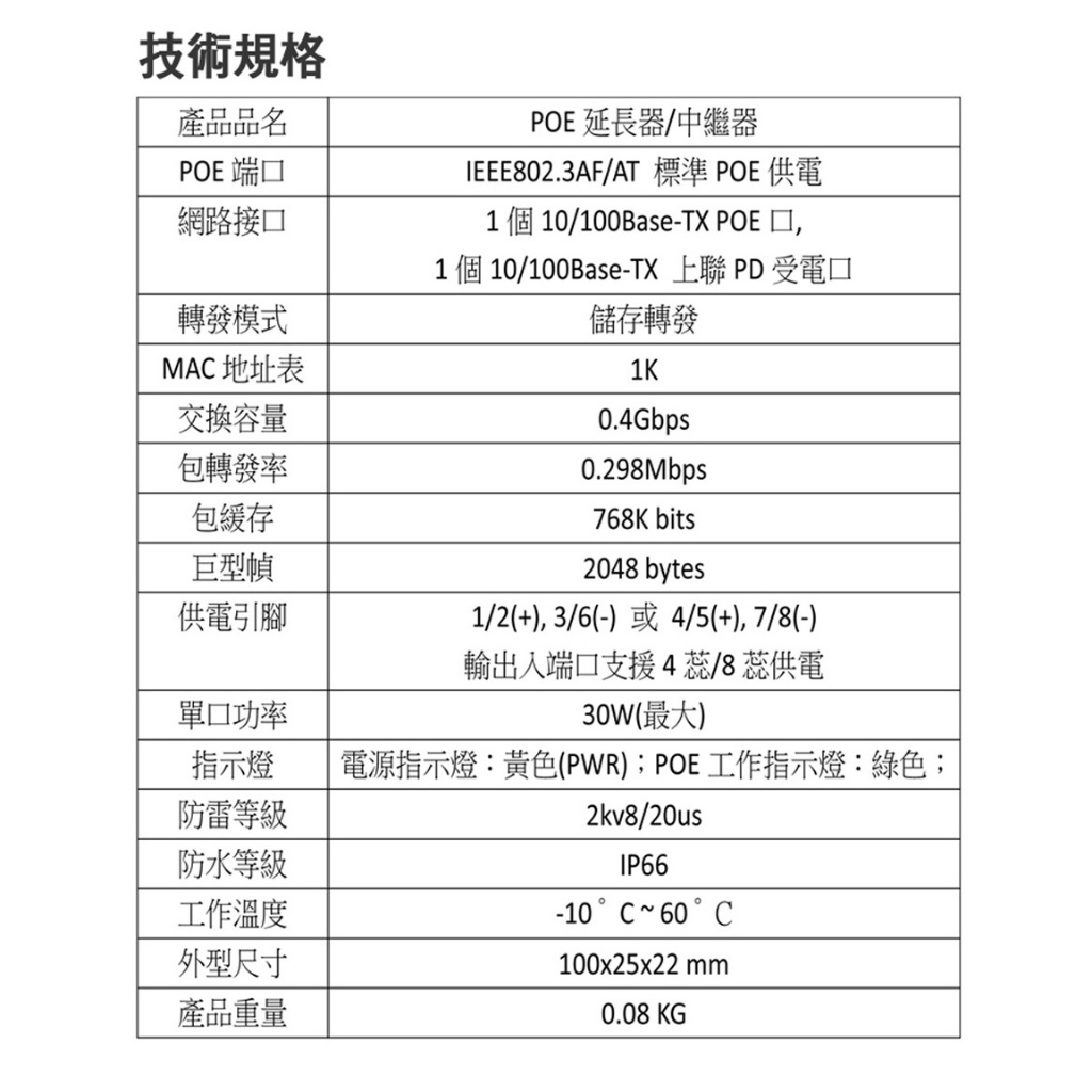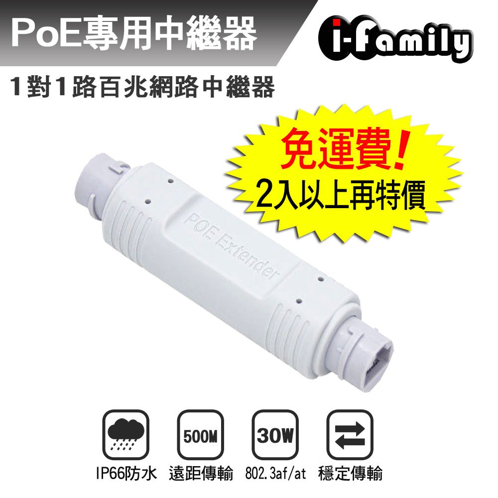 【宇晨I-Family】POE延長器 1對1 百兆 網路中繼器4入|1入|2入|3入|5入RepeatersI-Family