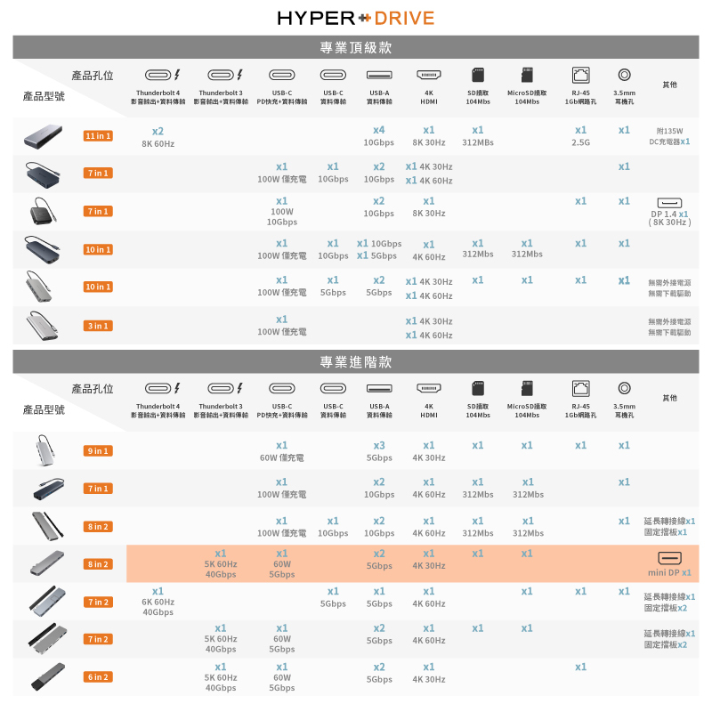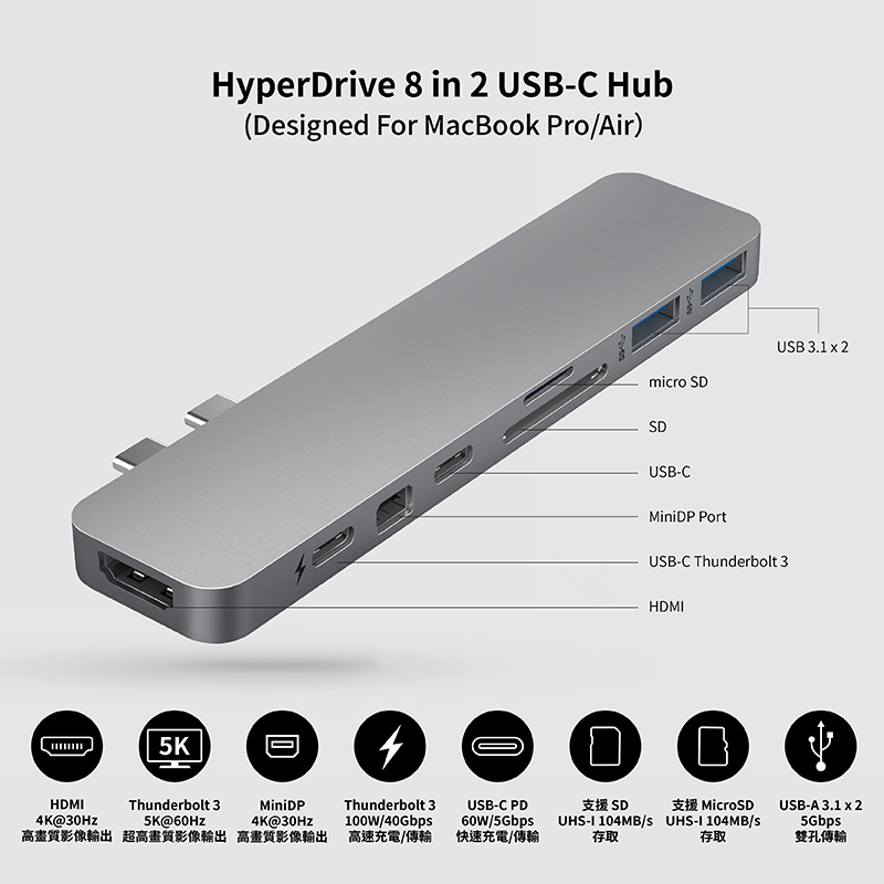 【HyperDrive】8-in-2 USB-C Hub 多功能集線器太空灰|銀Network Cables & ConnectorsHyperDrive 台灣官方旗艦店