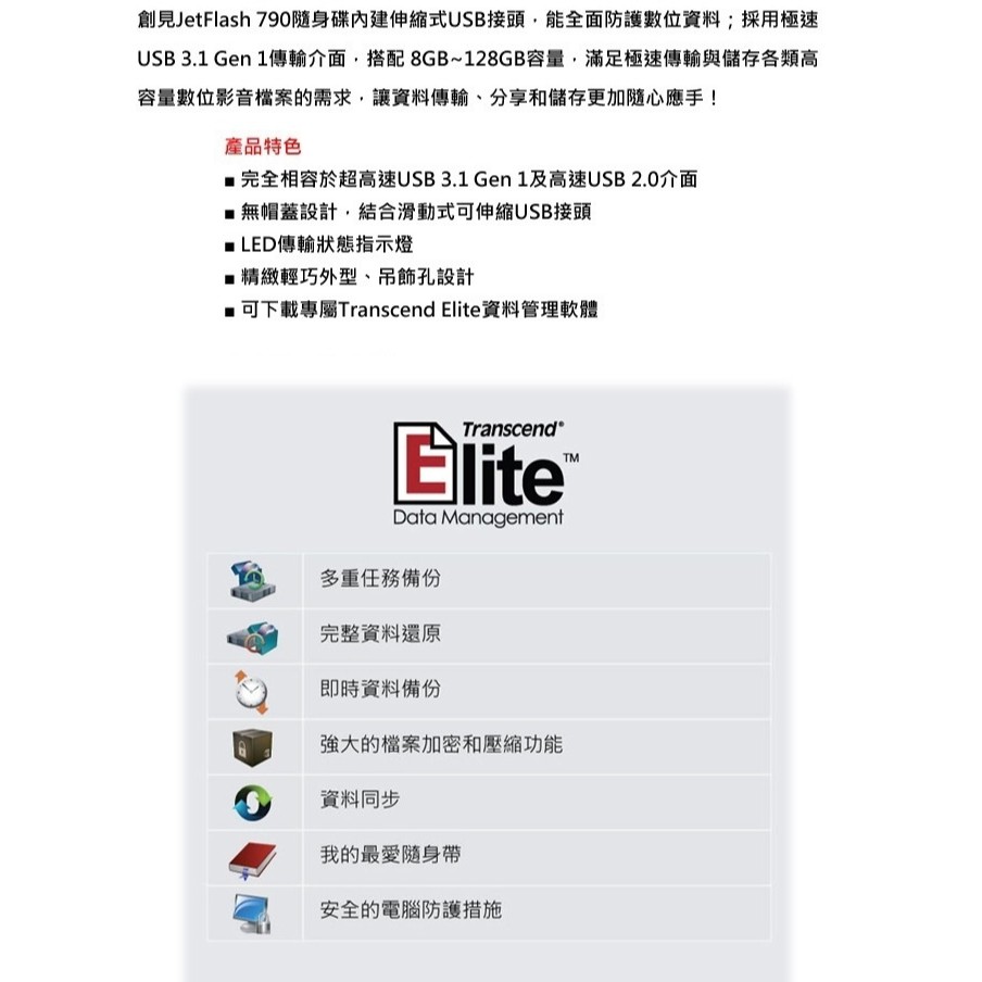 【Transcend創見】【公司貨現貨】 256G 128G 64G JetFlash790 無蓋伸縮碟 隨身碟 USB128G / 黑|128G / 白|256G / 黑|512G/黑Flash Drives & OTGiPanic 品牌專賣