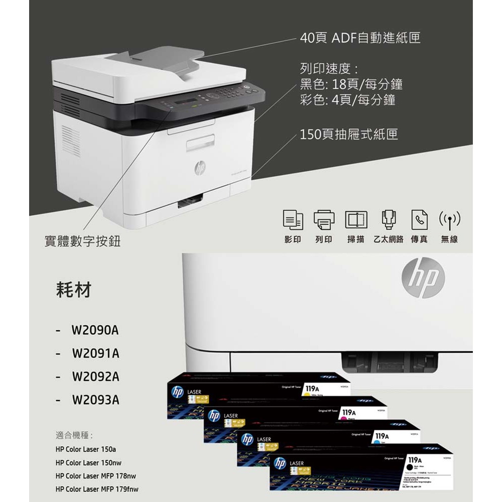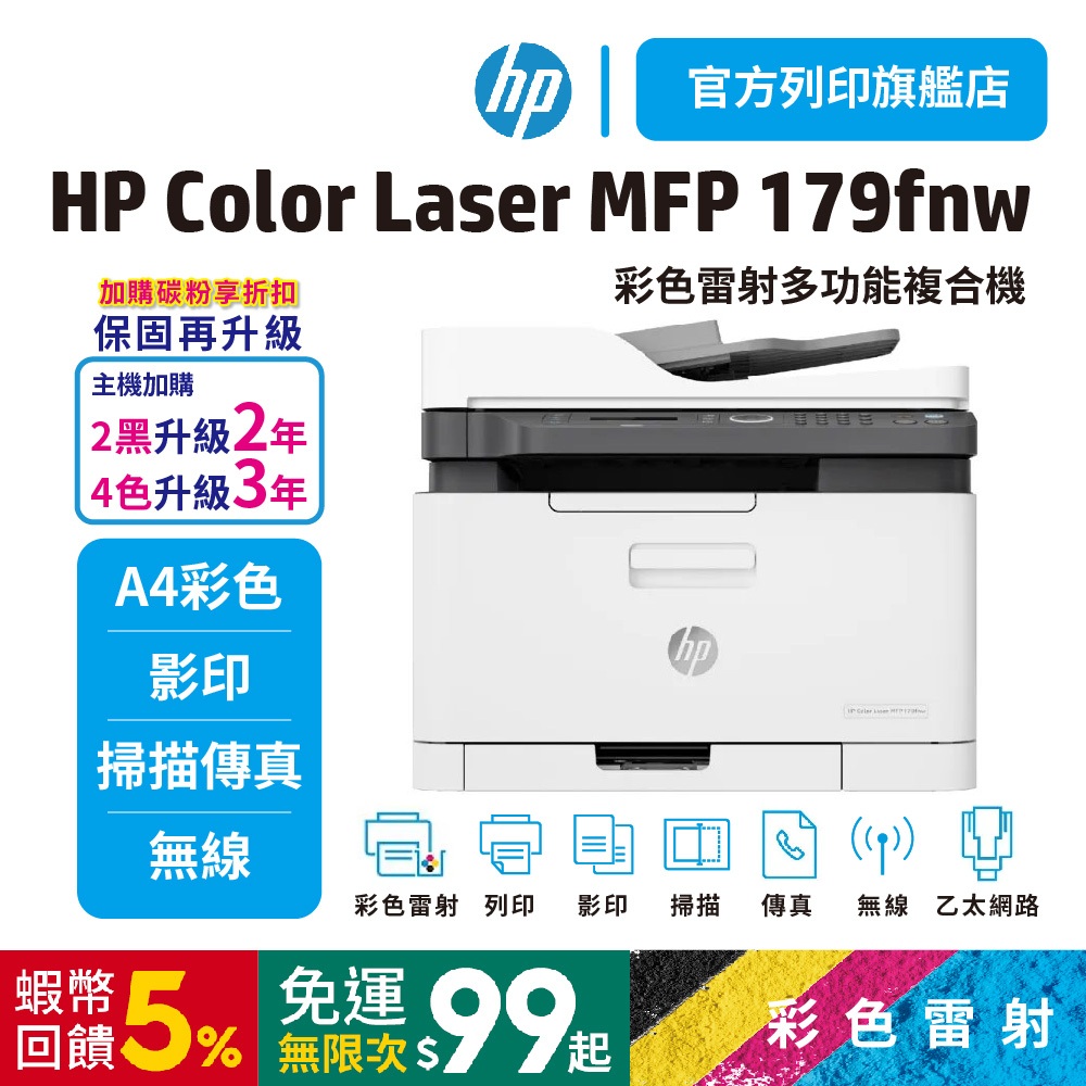 HP 179fnw【加贈hp護貝機】【滿額官網送好禮】【加購碳粉升級保固】彩色雷射複合機 (有傳真/影印/掃描/列印)單機+加贈HP護貝機Printers, Scanners & Photocopy MachinesHP惠普官方列印旗艦館 家用 | 商用列印方案