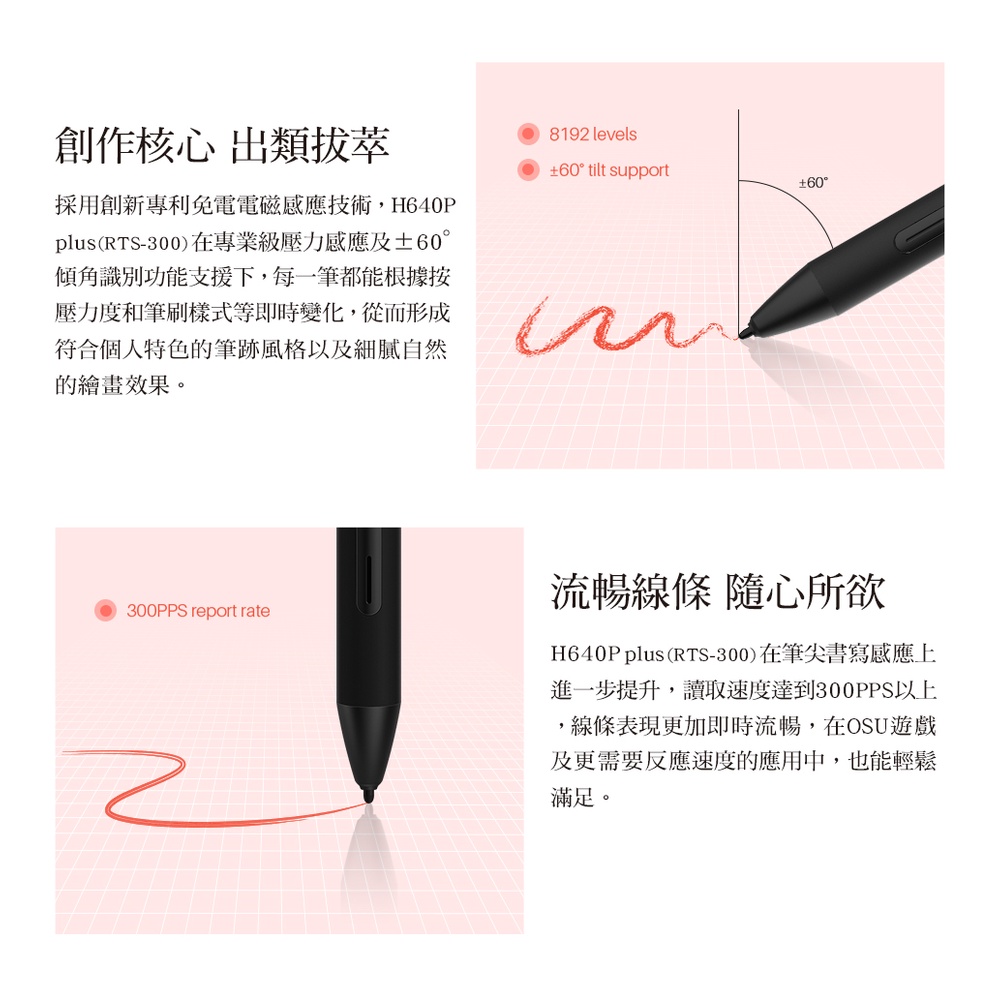 【HUION繪王】INSPIROY H640P plus(RTS-300) 繪圖板(星空黑/玫瑰粉)星空黑|玫瑰粉Drawing TabletsHUION繪王台灣總代理 | 意念數位直營店