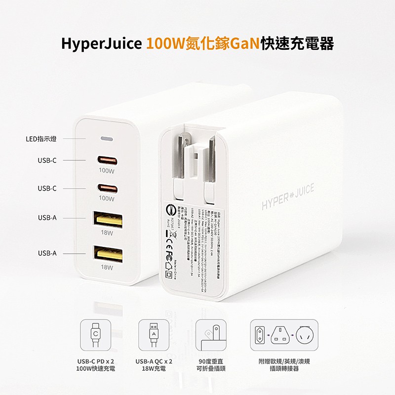 【HyperDrive】100W氮化鎵GaN快速充電器-新品/福利品100W (新品)|100W (福利品)Network Cables & ConnectorsHyperDrive 台灣官方旗艦店