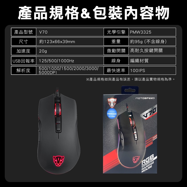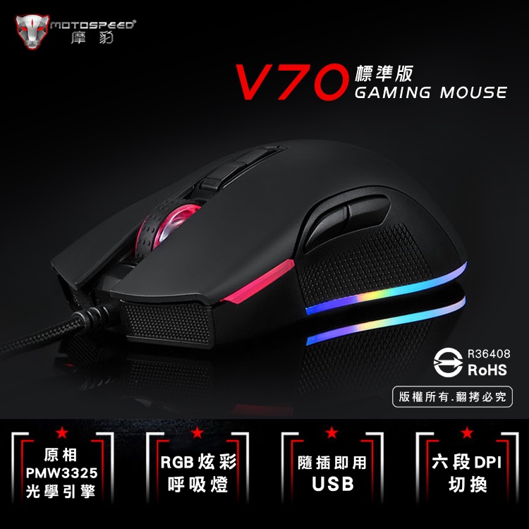 MOTOSPEED 摩豹 V70 PLUS RGB背光電競滑鼠V70|V70 PLUSMicei-gota官方旗艦館|昶興電子