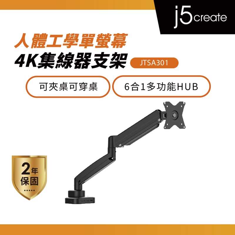 【j5create 凱捷】人體工學單螢幕4K集線器支架-JTSA301︱螢幕支架創新再升級/結合多功能擴充基座【j5create 凱捷】人體工學單螢幕4K集線器支架-JTSA301︱螢幕支架創新再升級/結合多功能擴充基座Othersj5create 凱捷