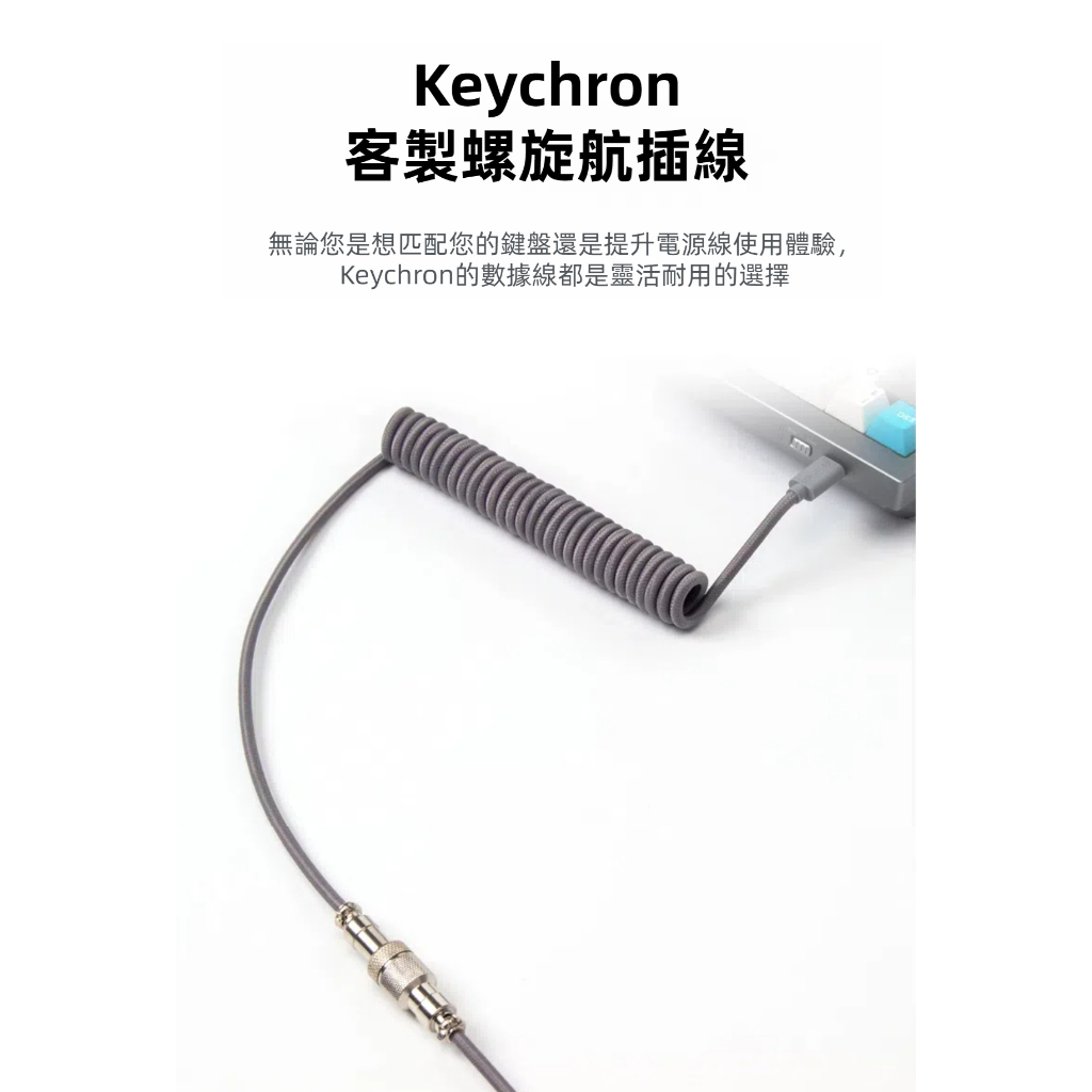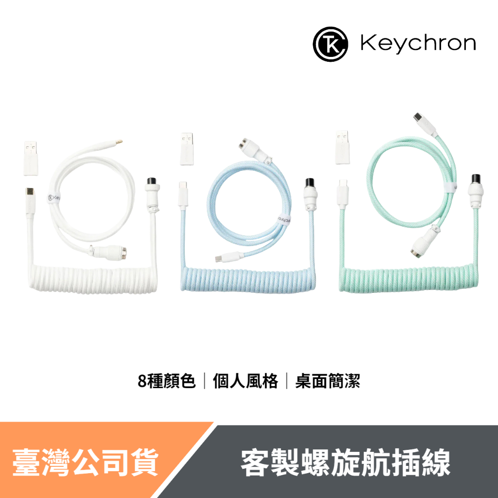 Keychron 客製螺旋航插線 鍵盤傳輸線 8色淺粉色航插線|黃色航插線|淺紫色航插線|薄荷色航插線|淺藍色航插線|白色航插線|黑色航插線|粉橙色航插線OthersKeychron臺灣官方旗艦店