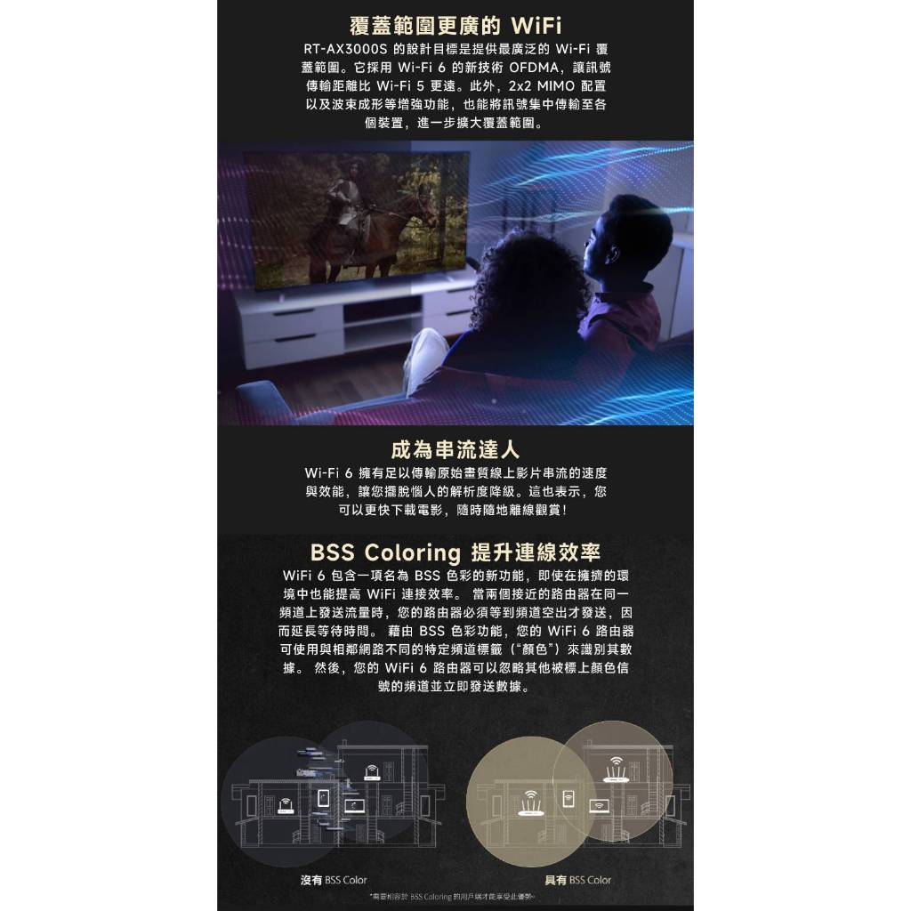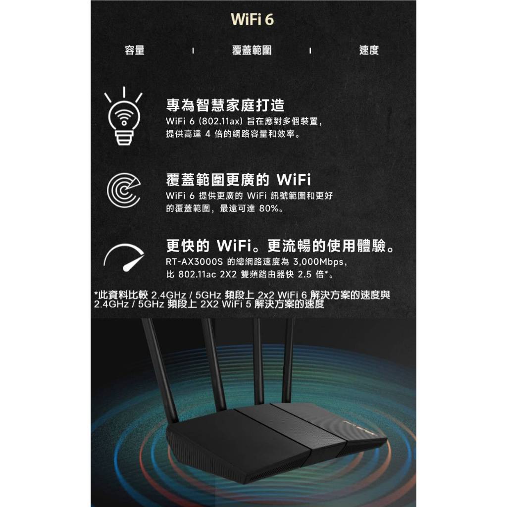 ASUS 華碩 RT-AX3000S 雙頻 WiFi 6 可延伸無線路由器 分享器台灣公司貨Modems & Wireless RoutersM O R E & M O R E 網路商城