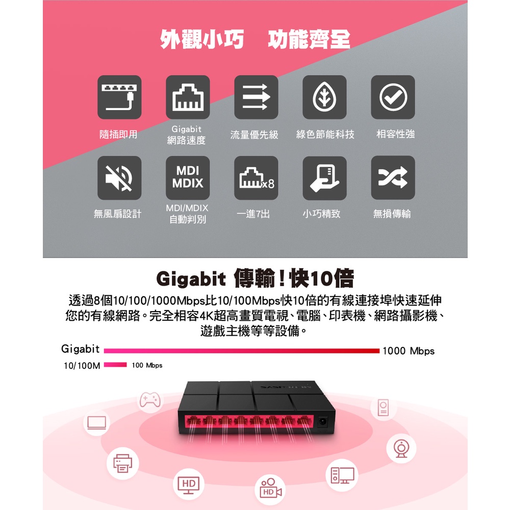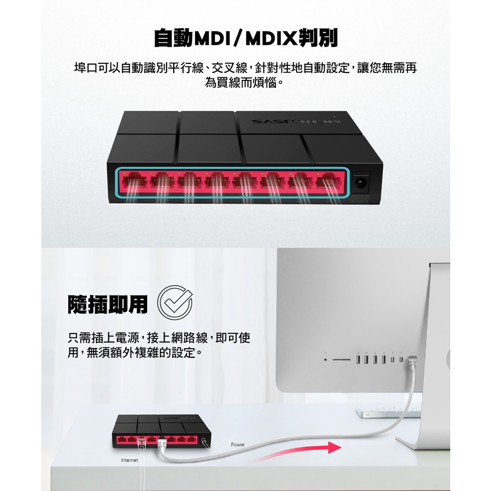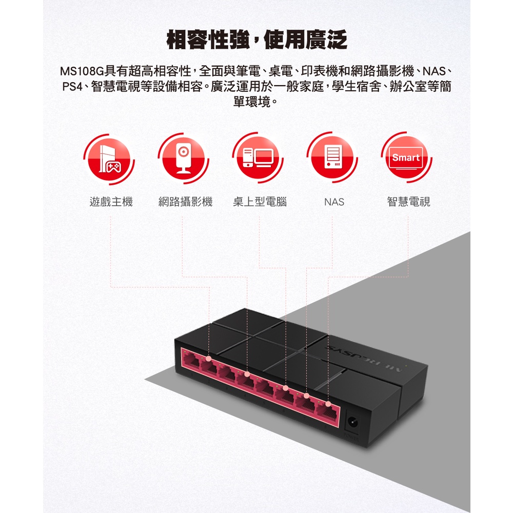 Mercusys水星網路 網路交換器 MS108G 8埠10/100/1000Mbps Gigabit hubMS108G|【福利品】MS108GNetwork Switches & PoEMercusys水星 官方旗艦店
