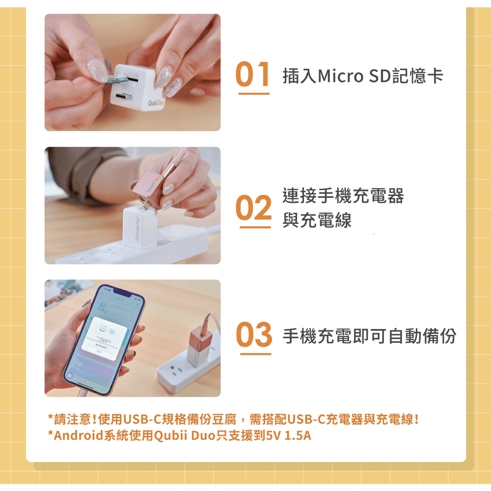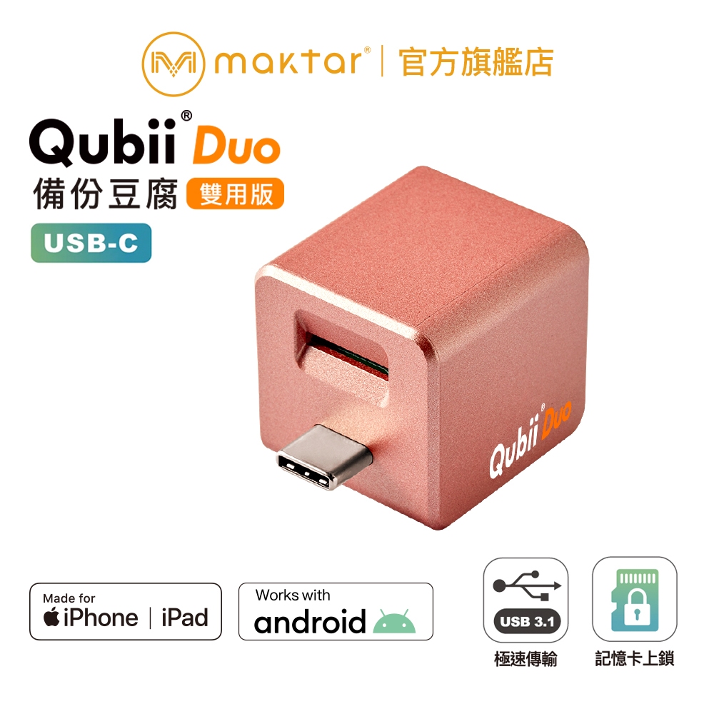 Maktar Qubii Duo USB-C〔 玫瑰金 〕備份豆腐 雙用版 自動備份 手機備份 蘋果MFi認證玫瑰金 (不含記憶卡)|玫瑰金+128G記憶卡|玫瑰金+256G記憶卡|優惠 – 玫瑰金+512G記憶卡Flash Drives & OTGMaktar 口袋相簿 備份豆腐品牌官方旗艦店