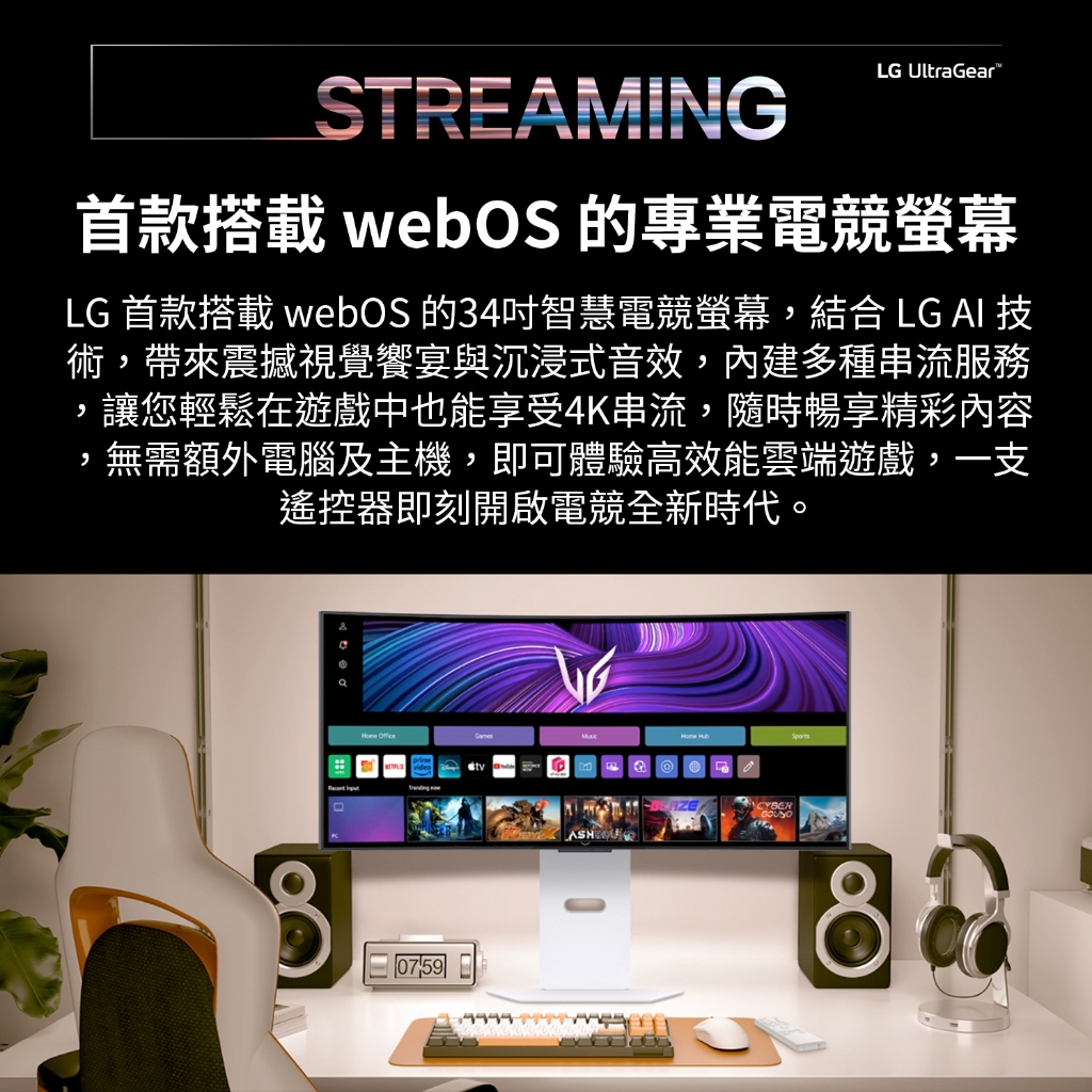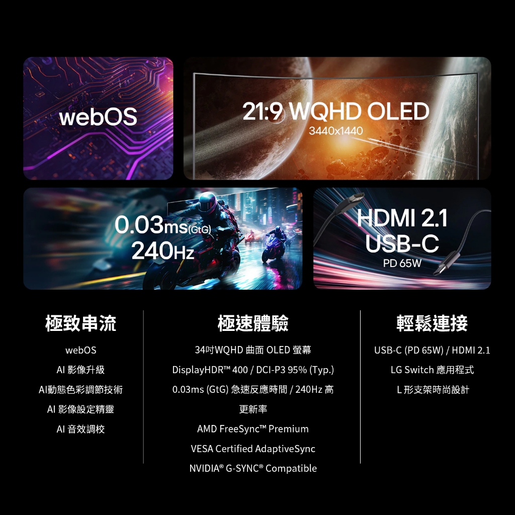 LG 34GX90SA-W OLED 21:9曲面智慧電競螢幕 34吋/WQHD/240Hz/0.03ms/webOSLG 34GX90SA-W OLED 21:9曲面智慧電競螢幕 34吋/WQHD/240Hz/0.03ms/webOSLG 3C品牌旗艦館