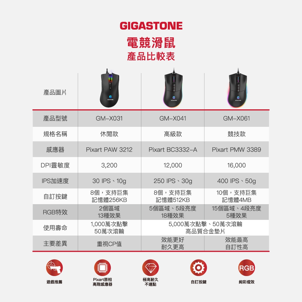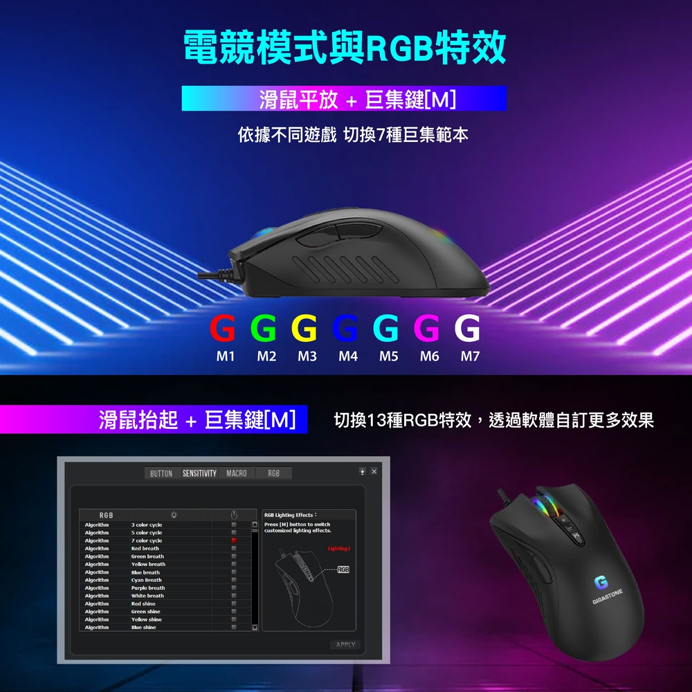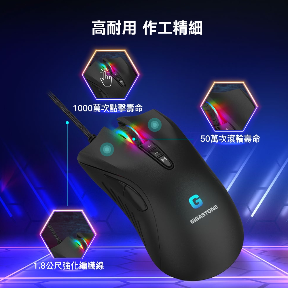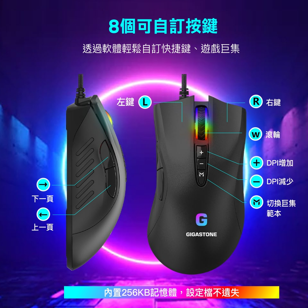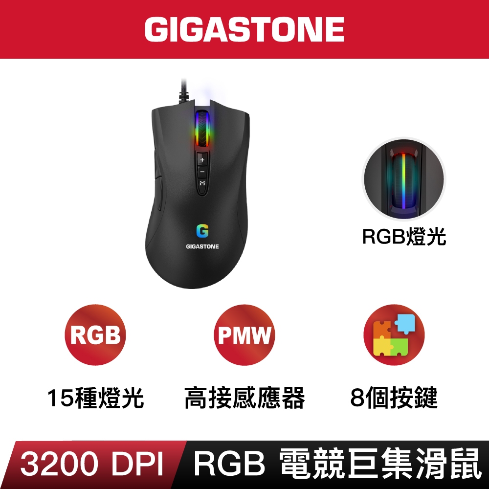 【GIGASTONE】GM-X031 RGB 電競滑鼠|入門款/3200 DPI/自訂按鍵8個/遊戲巨集/軟體控制【GIGASTONE】GM-X031 RGB 電競滑鼠|入門款/3200 DPI/自訂按鍵8個/遊戲巨集/軟體控制MiceGIGASTONE 立達國際官方旗艦店