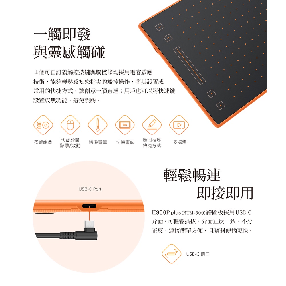 【HUION繪王】INSPIROY H950P plus(RTM-500) 繪圖板星空黑|丹霞橙Drawing TabletsHUION繪王台灣總代理 | 意念數位直營店