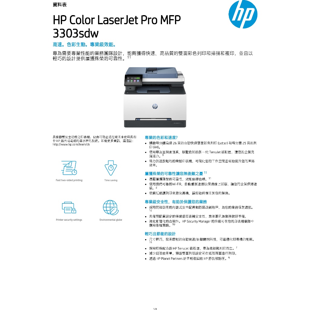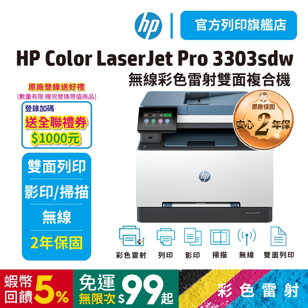 HP 3303sdw【官網滿額登錄送1000禮券】彩色雷射多功能事務機<旗艦館滿額加碼送好禮>
