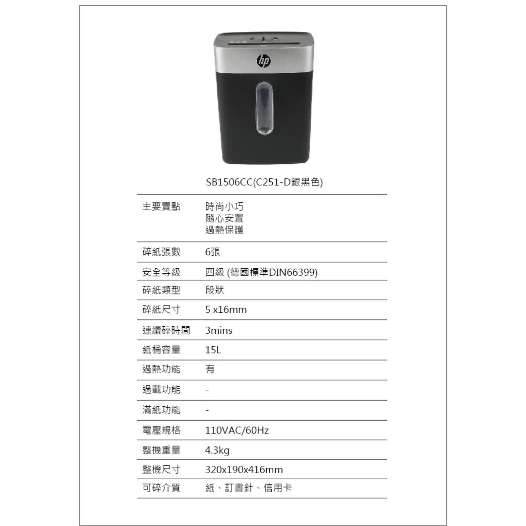 【HP碎紙機旗艦店】HP C251-D 銀鈦黑家用高保密碎紙機 (SB1506CC)C251-D 銀鈦黑Paper ShreddersHP惠普官方列印旗艦館 家用 | 商用列印方案
