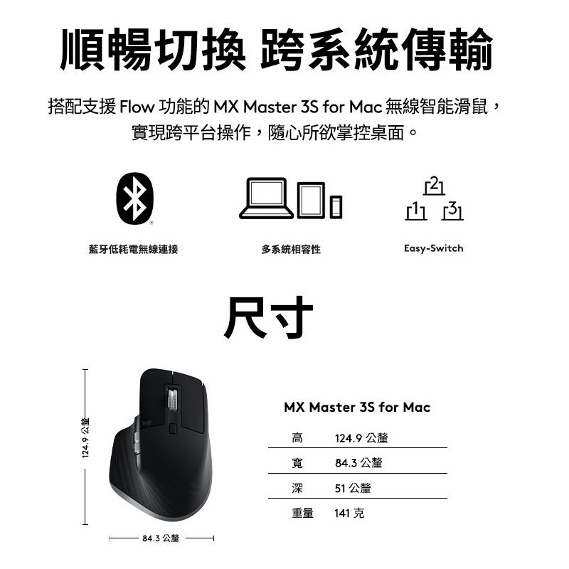Logitech 羅技 MX Master 3S For Mac 無線智能滑鼠石墨黑|灰白色MiceLogitech羅技官方旗艦館
