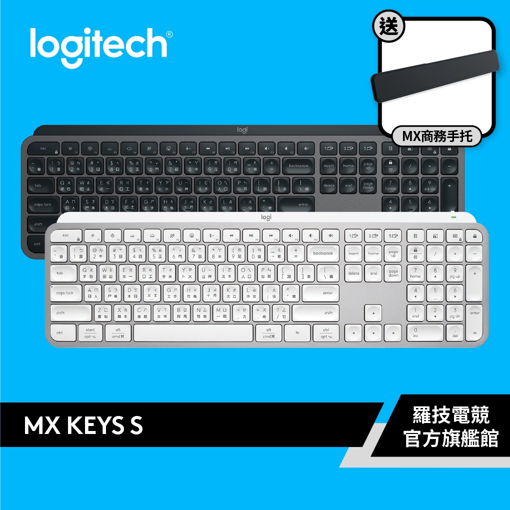 Logitech 羅技 MX KEYS S無線 智能鍵盤【電競館】石墨灰+贈MX手托|珍珠白+贈MX手托KeyboardsLogitech G 羅技電競官方旗艦館