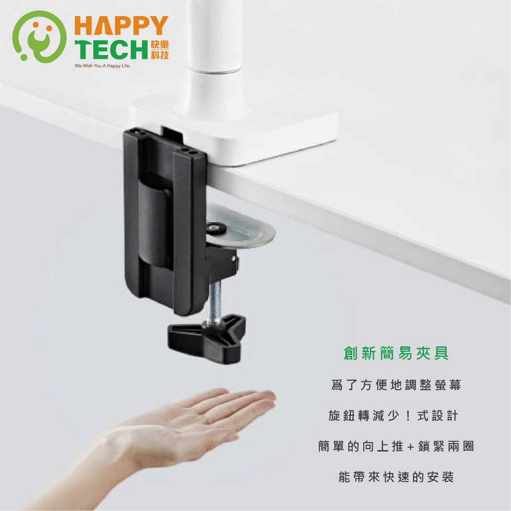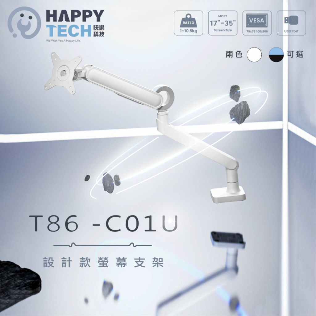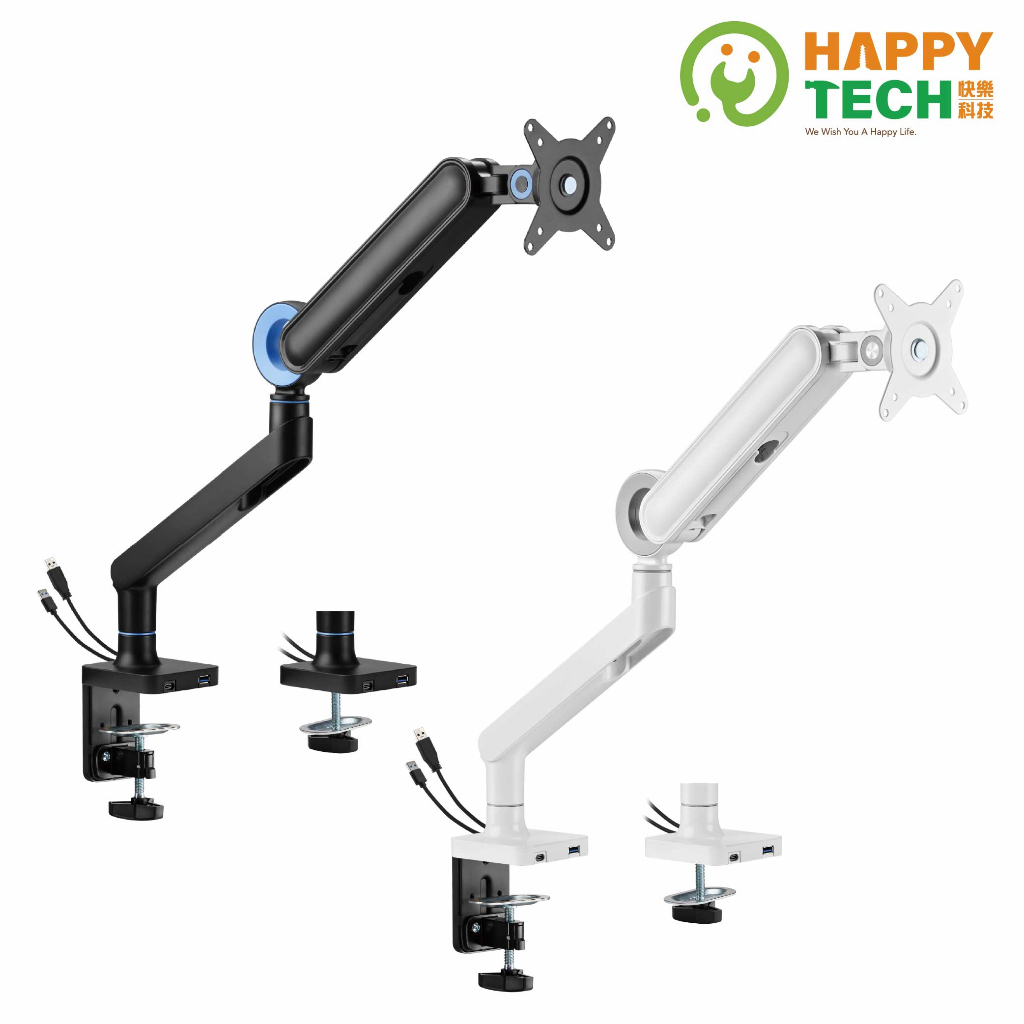 【HappyTech】T86-C01U 鋁合金17-35吋 單螢幕支架 曲面螢幕 夾鎖桌2用USB3.0+Type C黑亞光(超商限一組)|白亞光(超商限一組)|黑亞光+PAD0902-W(超商限一組)|白亞光+PAD0902-W(超商限一組)OthersHappy Tech 品牌旗艦館