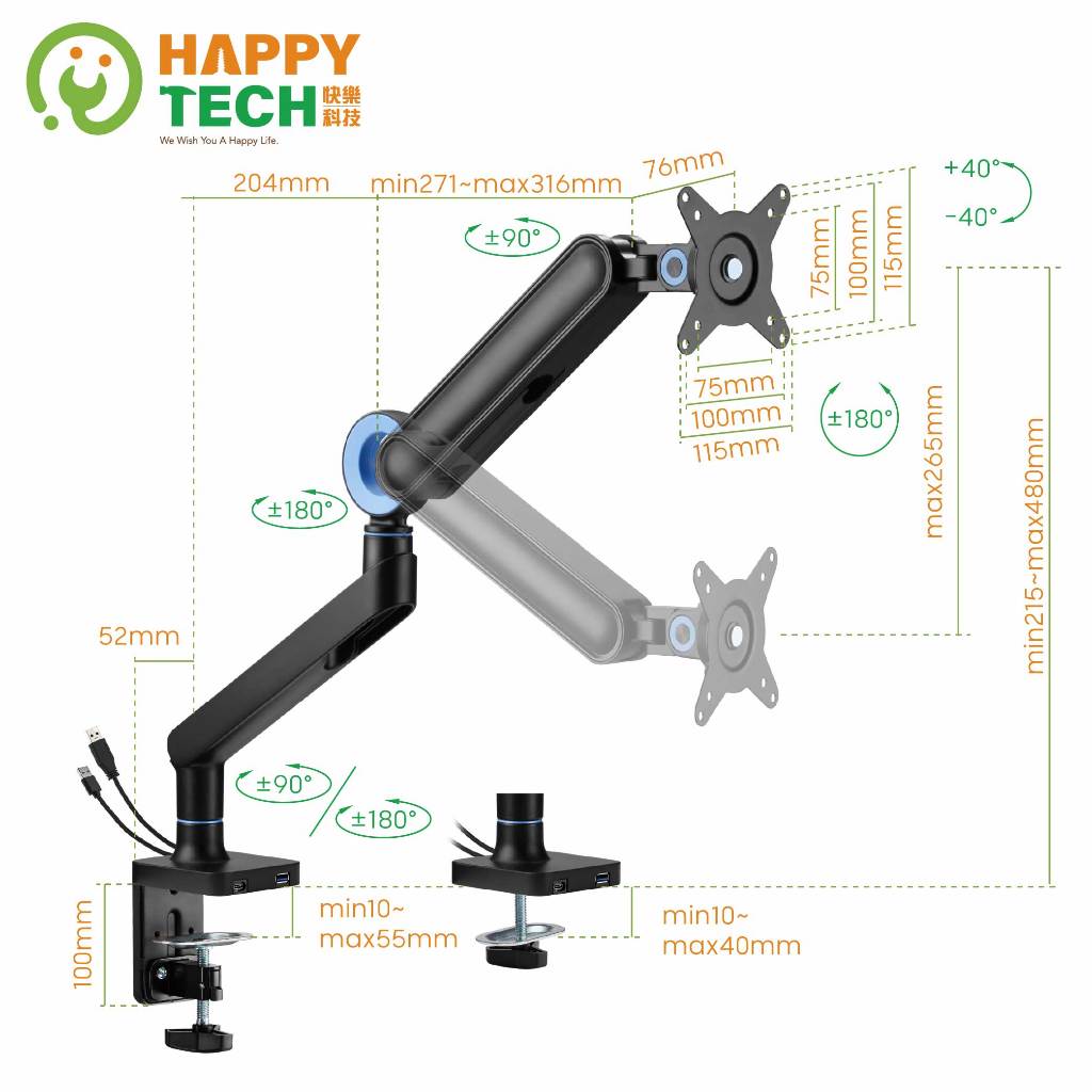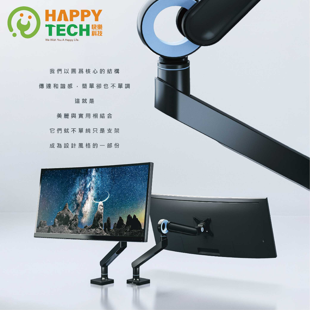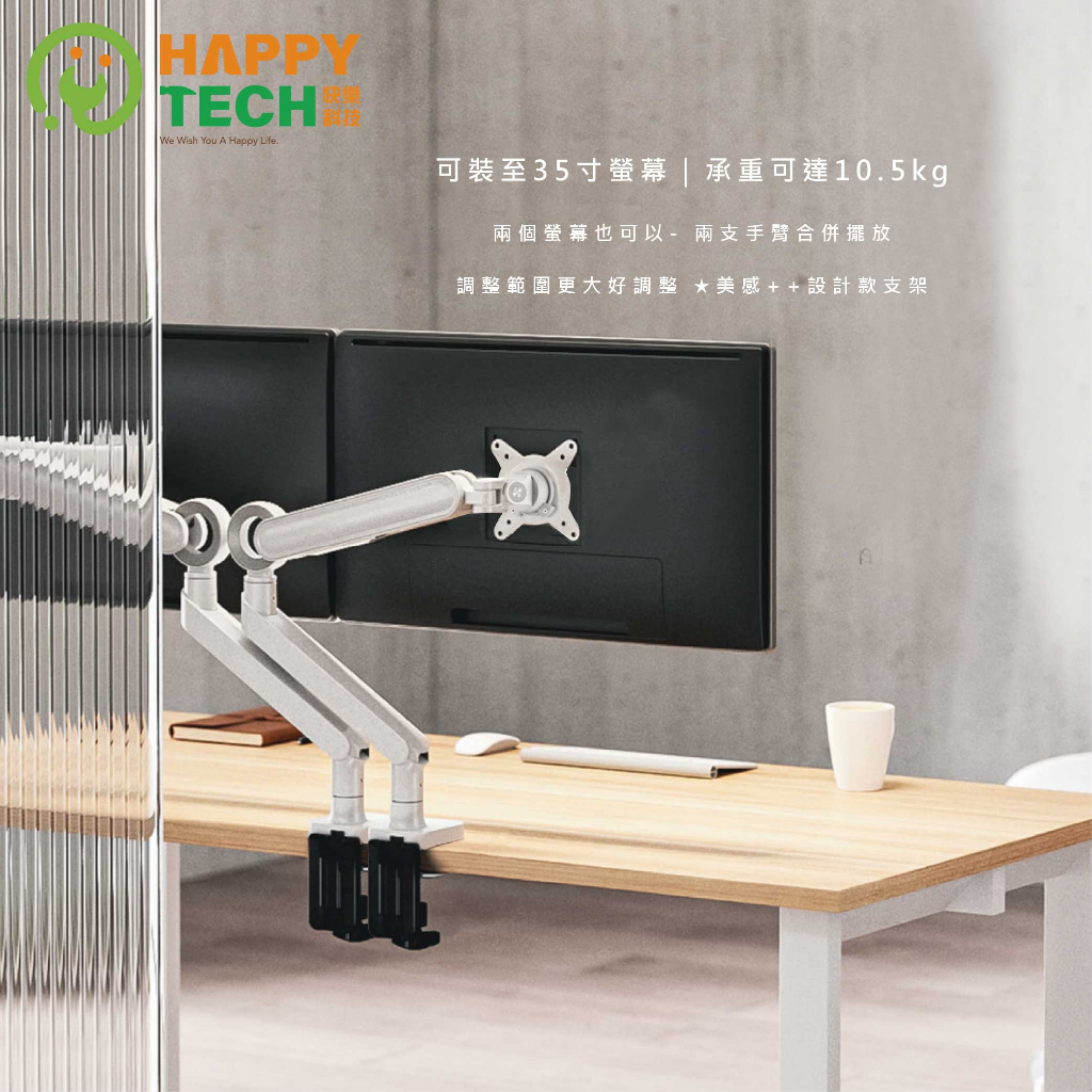 【HappyTech】T86-C01U 鋁合金17-35吋 單螢幕支架 曲面螢幕 夾鎖桌2用USB3.0+Type C黑亞光(超商限一組)|白亞光(超商限一組)|黑亞光+PAD0902-W(超商限一組)|白亞光+PAD0902-W(超商限一組)OthersHappy Tech 品牌旗艦館