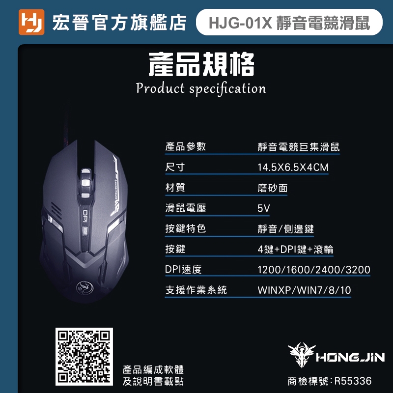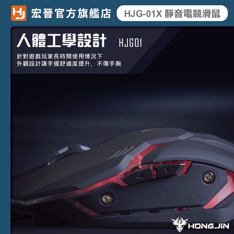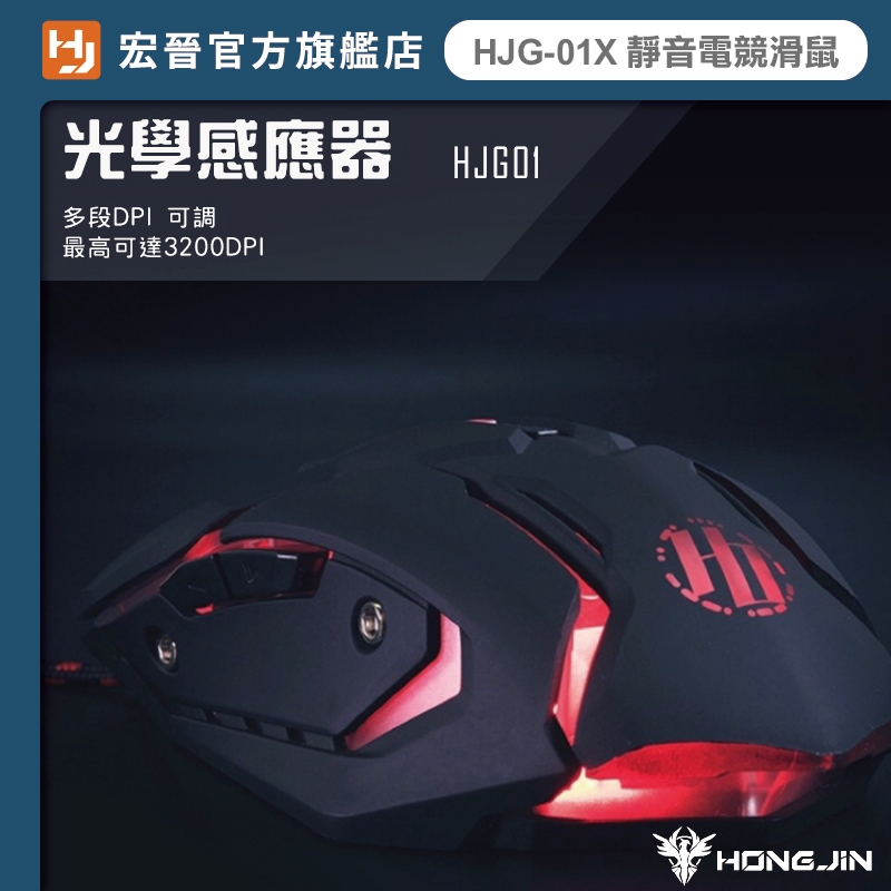 宏晉 Hongjin HJG-01X 靜音電競滑鼠 可編輯RGB燈光 呼吸燈 4段dpi 有線滑鼠 辦公 文書 電競滑鼠【HJG-01】MiceHONG JIN 宏晉 |3C資訊廣場