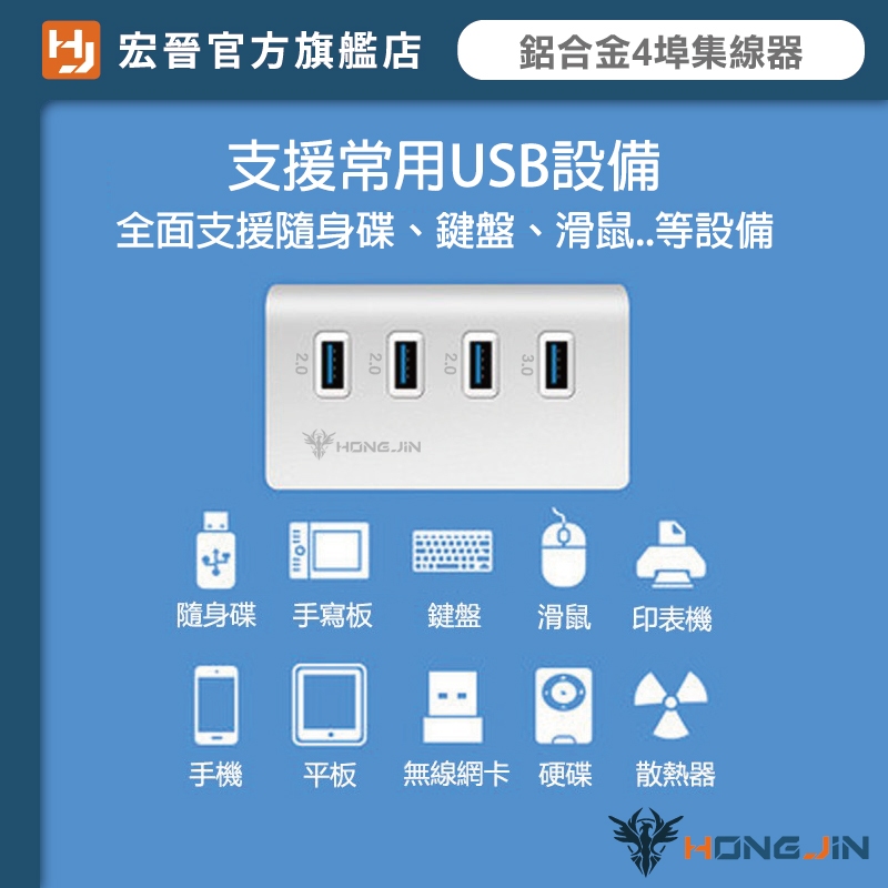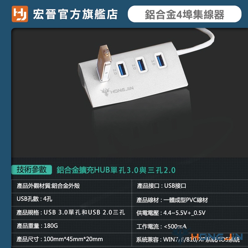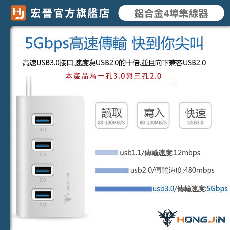 宏晉 鋁合金4埠集線器 USB3.0HUB 高速傳輸 隨插即用 電腦HUB HUB擴充USB2.0+USB3.0極速傳輸鋁合金HUB【1xU3+3xU2】USB Hubs & Card ReadersHONG JIN 宏晉 |3C資訊廣場