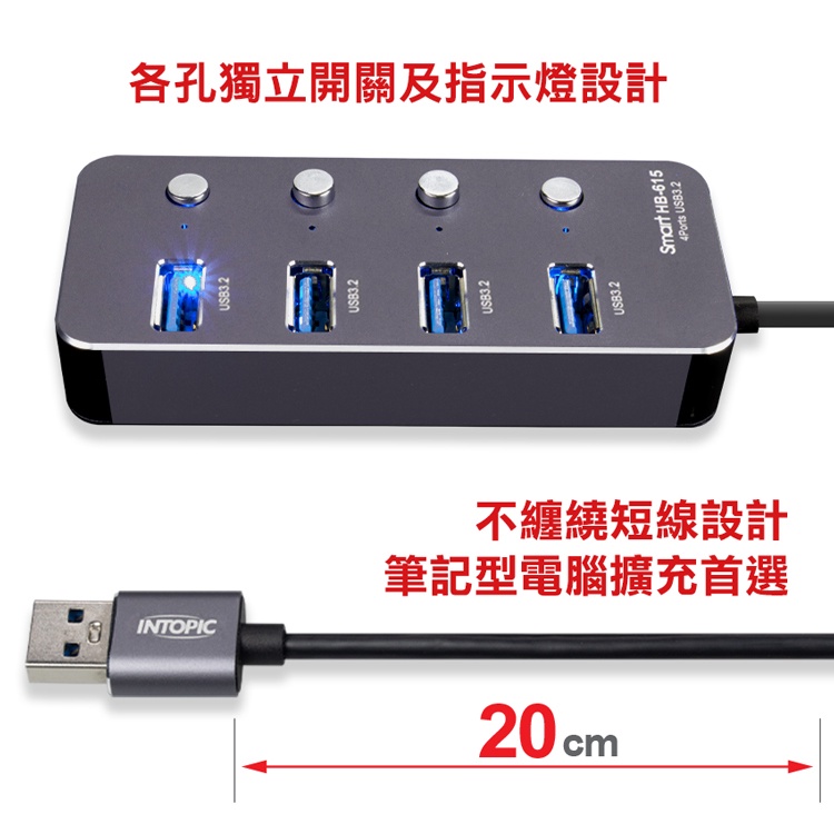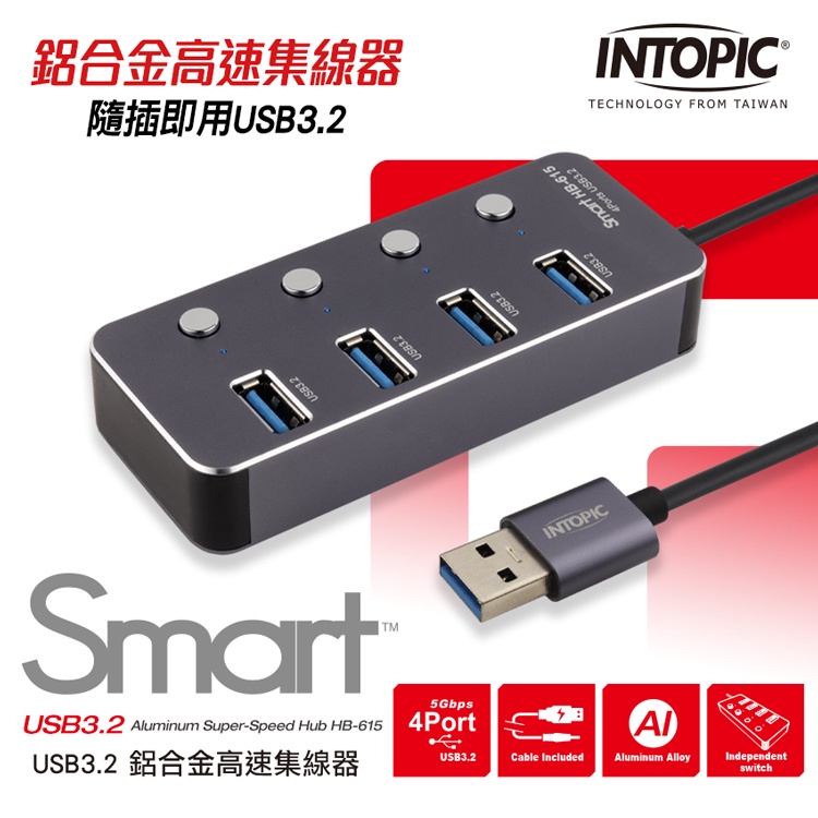 【Intopic】HB-615 4埠 USB3.2 鋁合金 高速 集線器 USB HUB【Intopic】HB-615 4埠 USB3.2 鋁合金 高速 集線器 USB HUBUSB Hubs & Card ReadersIntopic廣鼎國際 | 官方3C旗艦館