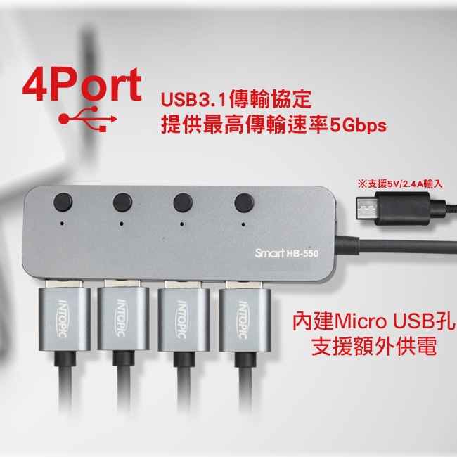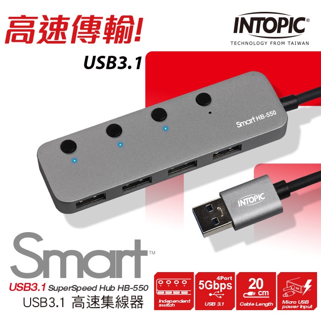 【Intopic】HB-550 USB3.1 四埠 集線器 USB HUB 延長線【Intopic】HB-550 USB3.1 四埠 集線器 USB HUB 延長線Network Cables & ConnectorsIntopic廣鼎國際 | 官方3C旗艦館