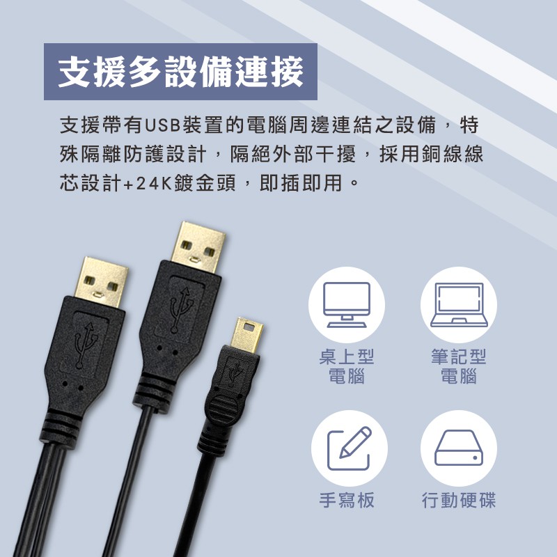 USB-A to Mini USB 2.0 連接線, Y型線, 額外供電, 適合2.5吋硬碟, 80cm2.5吋硬碟專用 Y型線x1Network Cables & Connectorsi-gota官方旗艦館|昶興電子