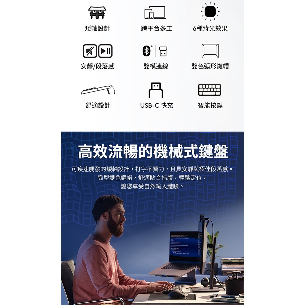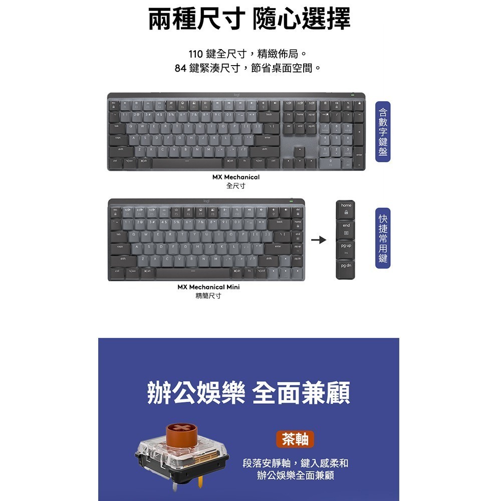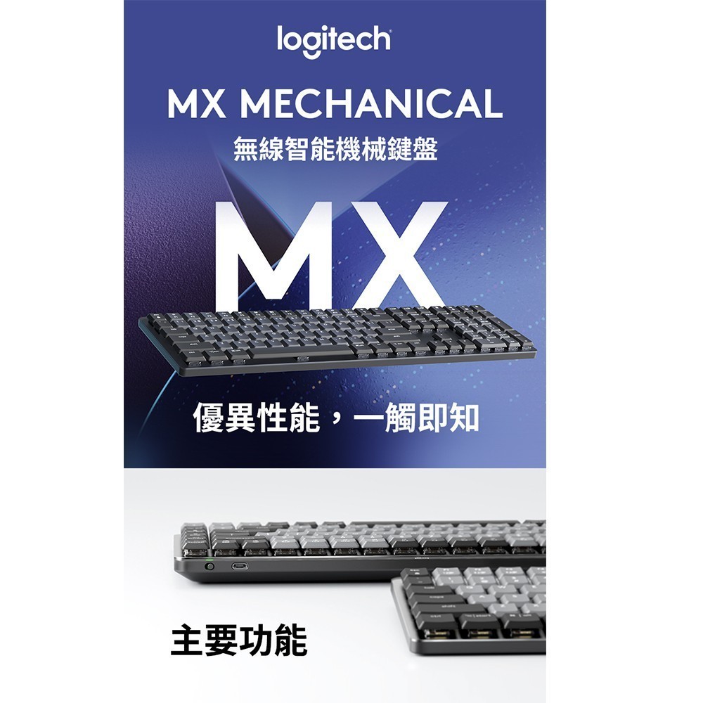 Logitech 羅技 MX Mechanical 無線智能機械鍵盤-茶軸全尺寸KeyboardsLogitech羅技官方旗艦館