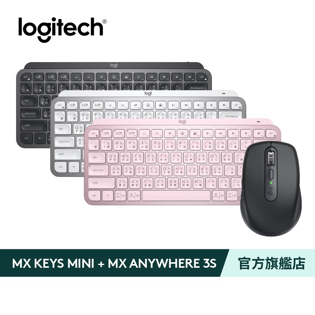 Logitech 羅技 MX KEYS Mini 無線鍵盤+MX Anywhere 3S 無線行動滑鼠簡約白,珍珠白|簡約白,玫瑰粉|玫瑰粉,玫瑰粉|石墨灰,石墨灰|石墨灰,珍珠白|石墨灰,玫瑰粉|簡約白,石墨灰|玫瑰粉,石墨灰|玫瑰粉,珍珠白KeyboardsLogitech羅技官方旗艦館