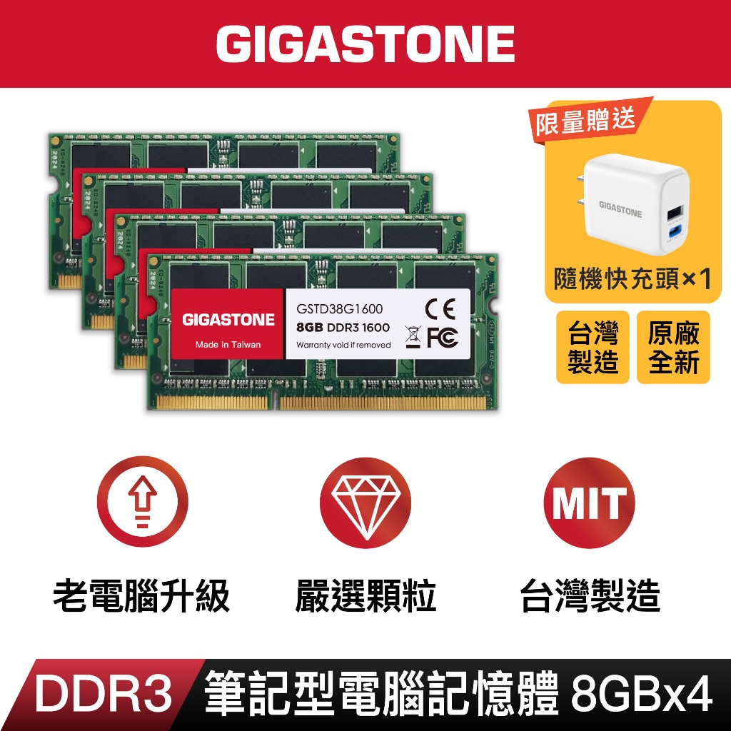 【GIGASTONE】筆電記憶體DDR3 8G四入 1600MHz|台灣製造/RAM筆記型電腦DDR3L/8GB/32G
