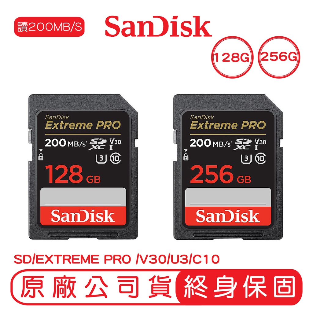 SanDisk 256GB 128GB EXTREME PRO SD U3 V30 記憶卡 讀200M SDXC128G (R200/W90)|256G (R200/W140)OthersiPanic 品牌專賣